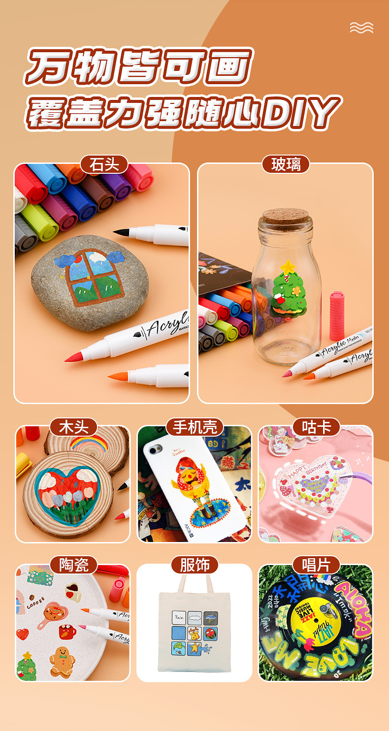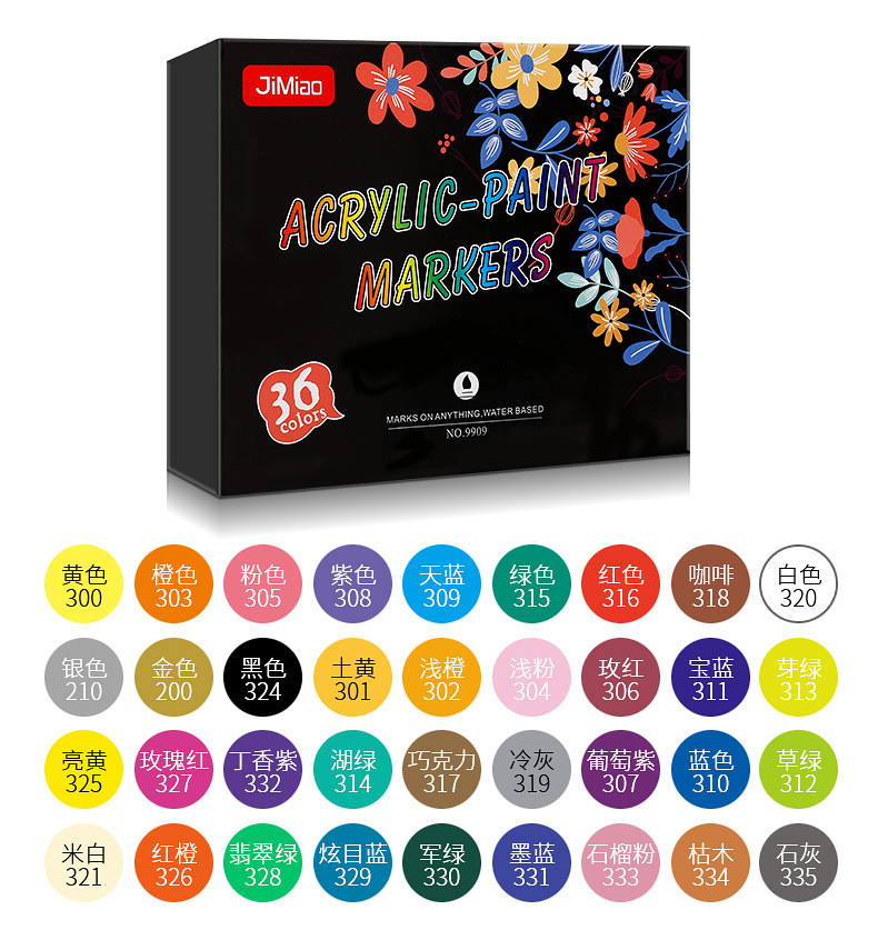 Marcador de acrílico 36 traje de color suave cabeza agua tiza DIY marcador de piedra de tarjeta negro caliente marcador a base de agua