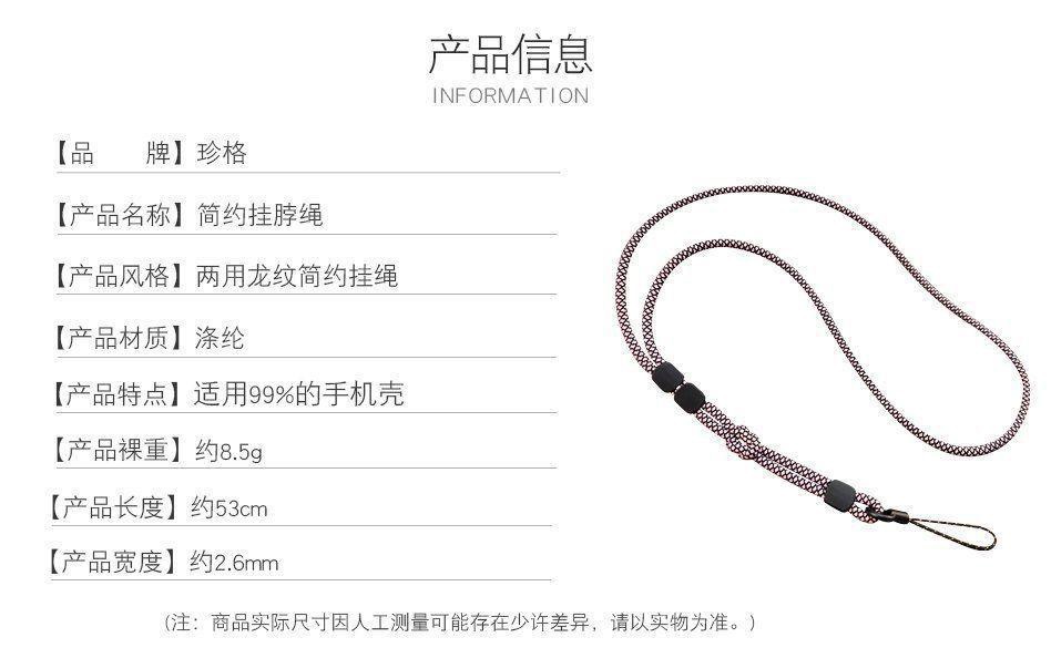 Cordón de teléfono móvil Halter largo simple de doble uso cordón ajustable desmontable Cadena de teléfono móvil caja de teléfono sólido anti-perdido