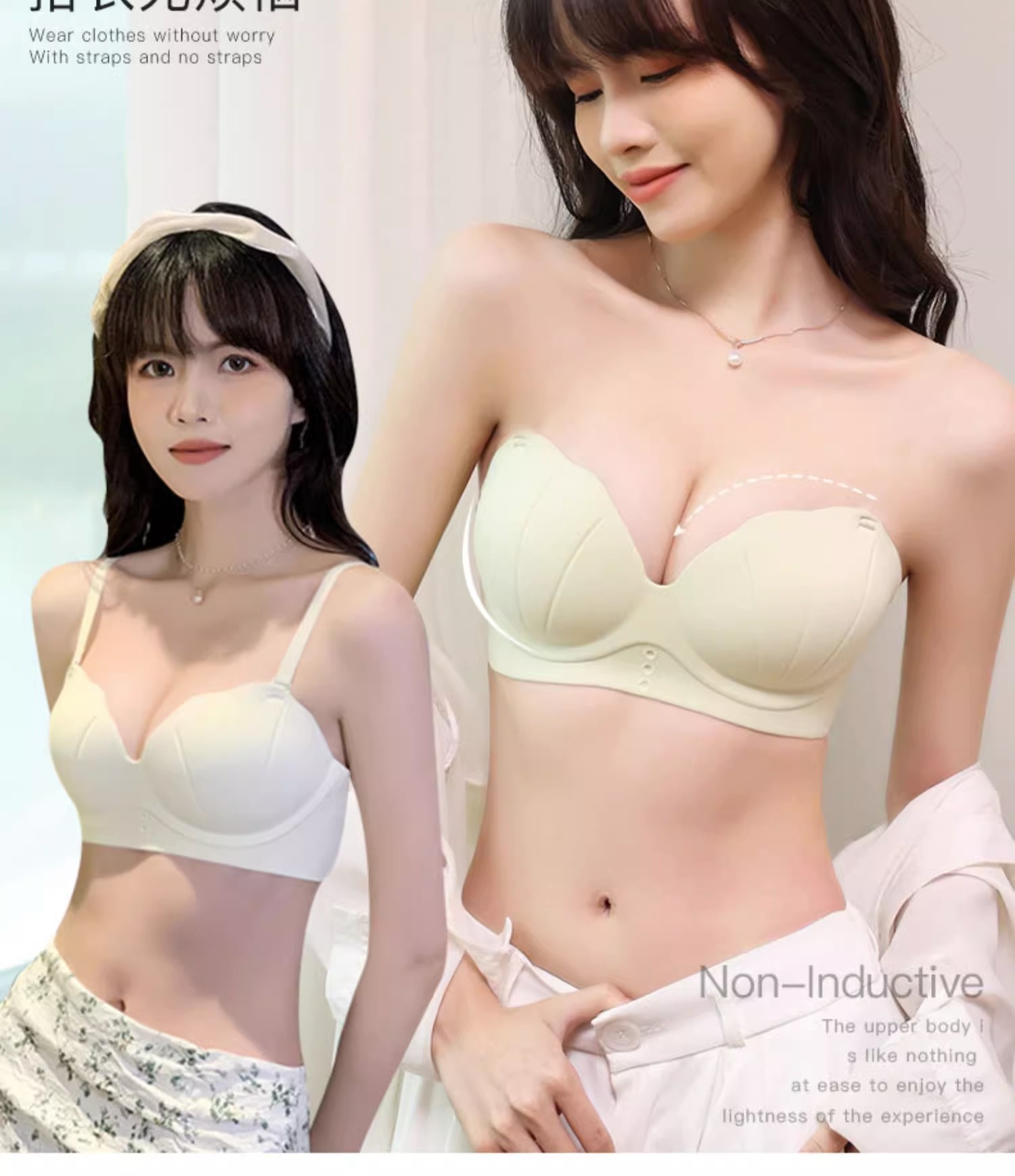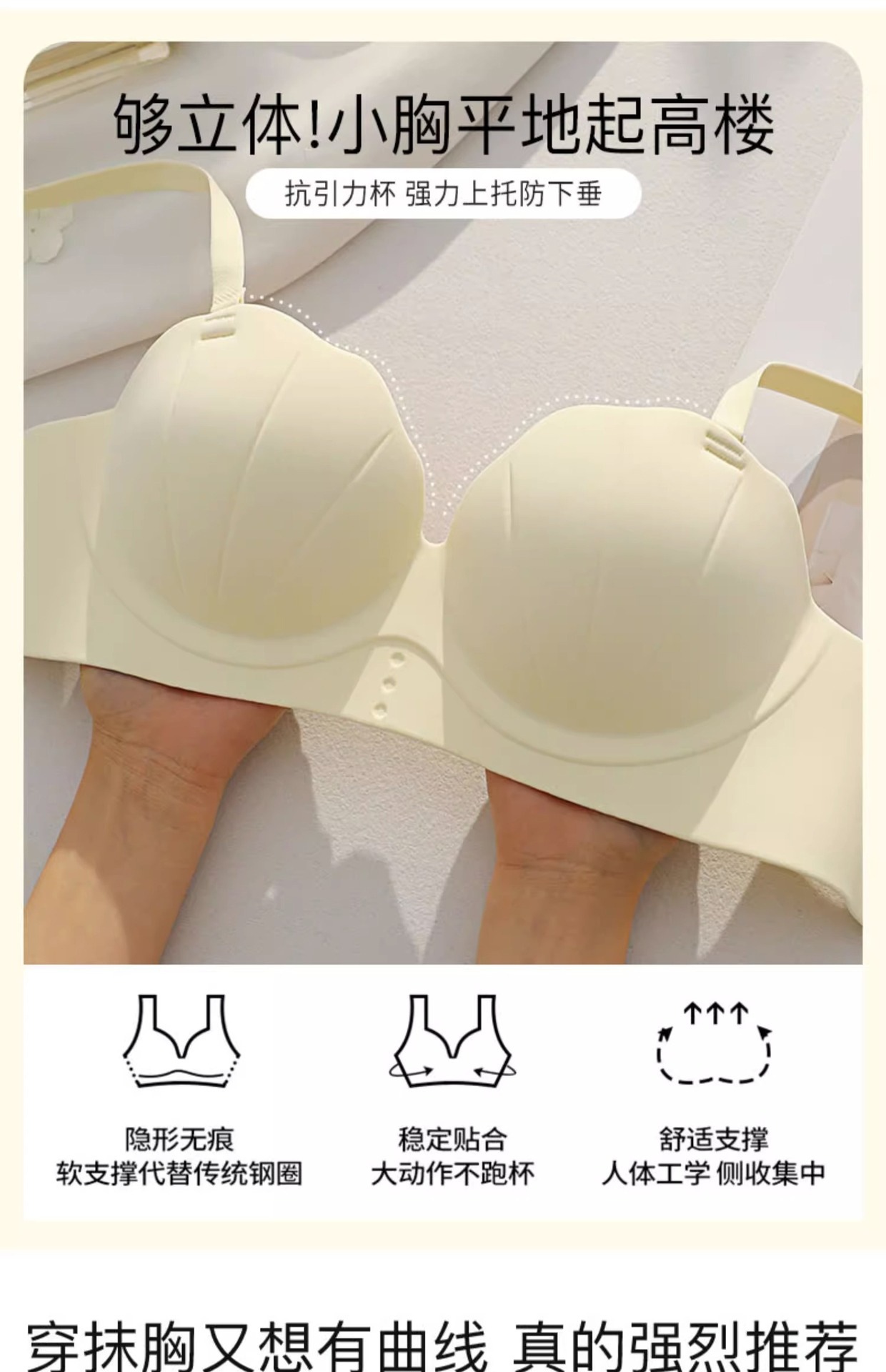 Ropa interior sin costuras de las mujeres pequeño pecho push-up copa de palma grande pecho-recolección de pecho anti-flacidez sin tirantes sujetador antideslizante verano de las mujeres