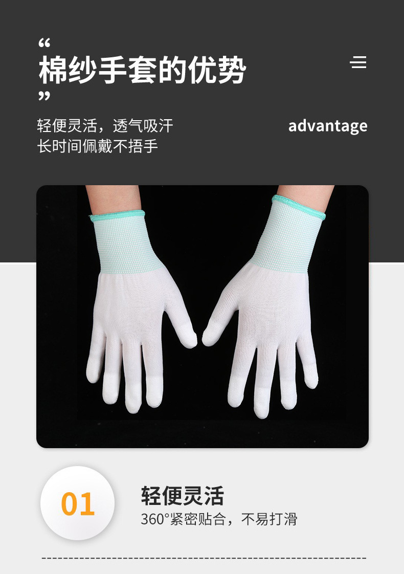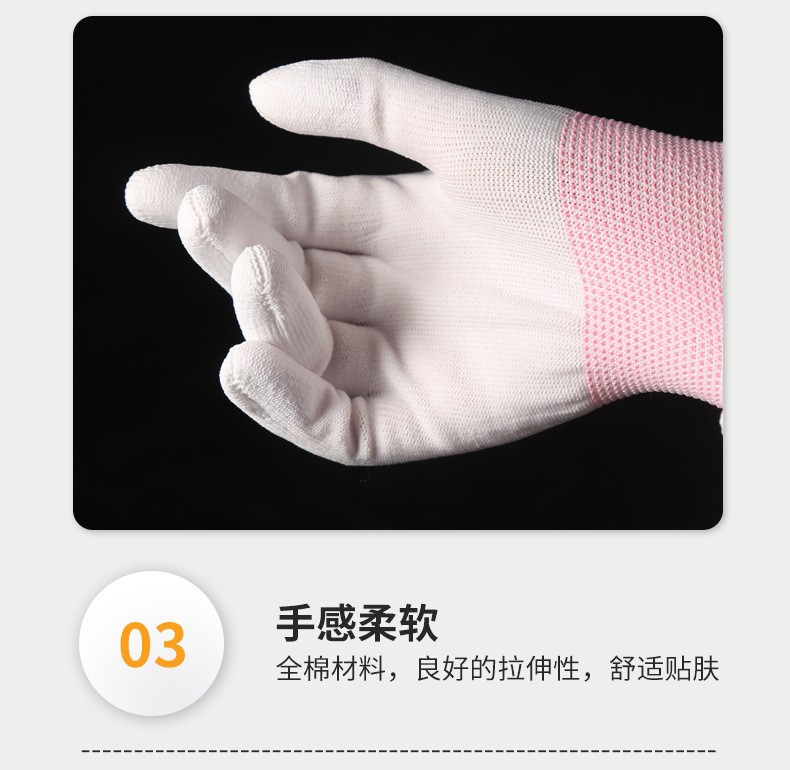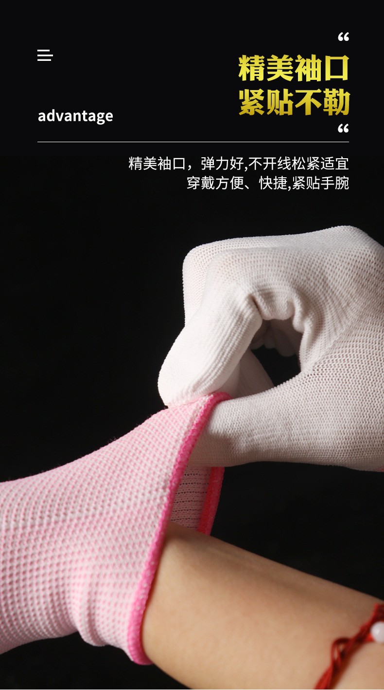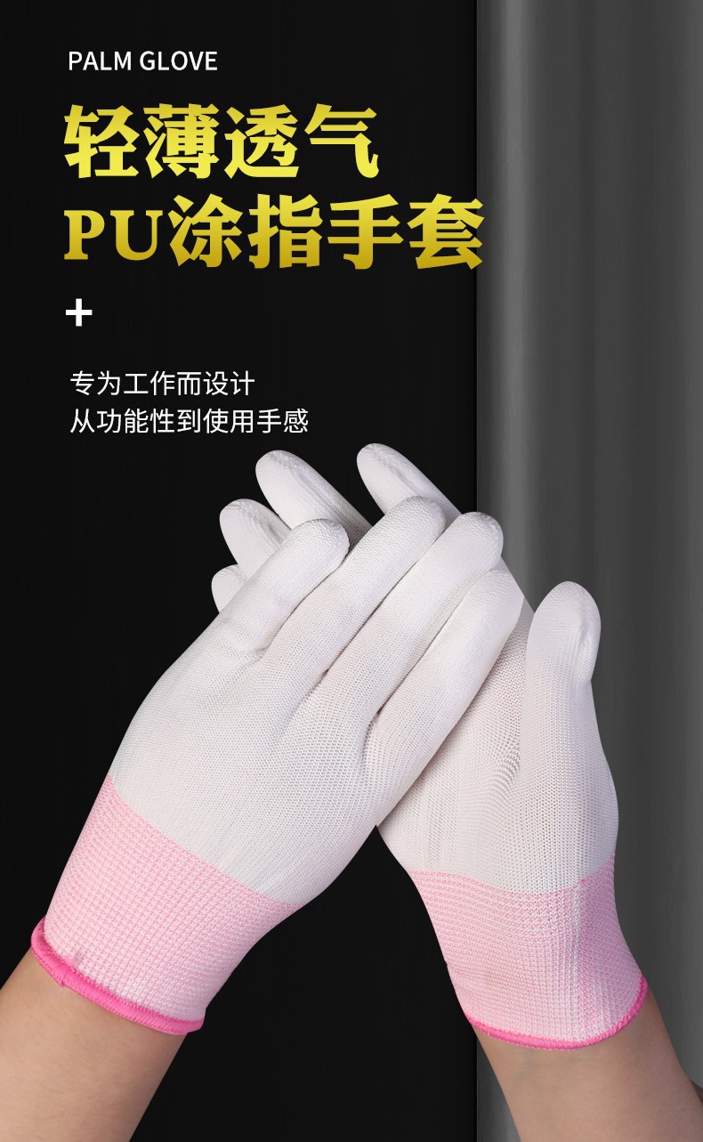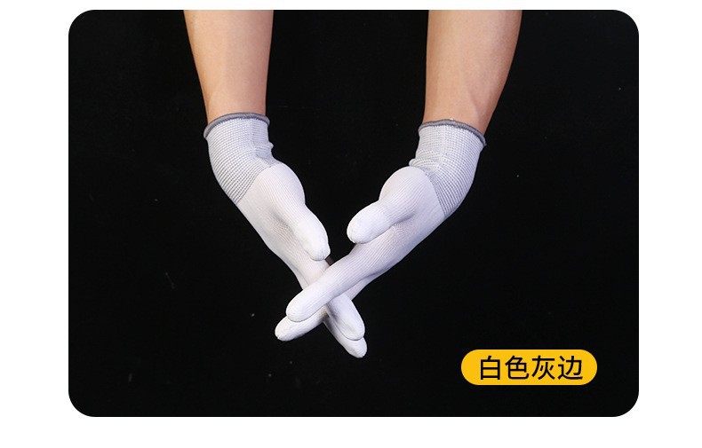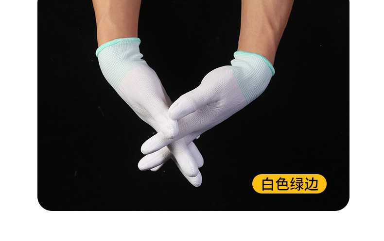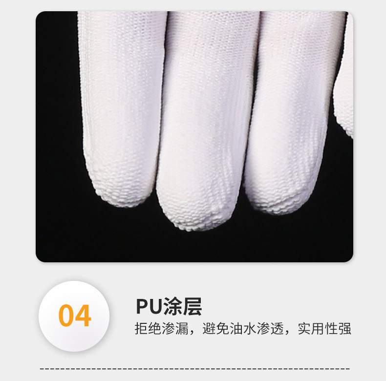 Guantes recubiertos de PU fábrica electrónica prácticos guantes de nylon antideslizantes guantes de protección laboral guantes de protección de polvo blanco