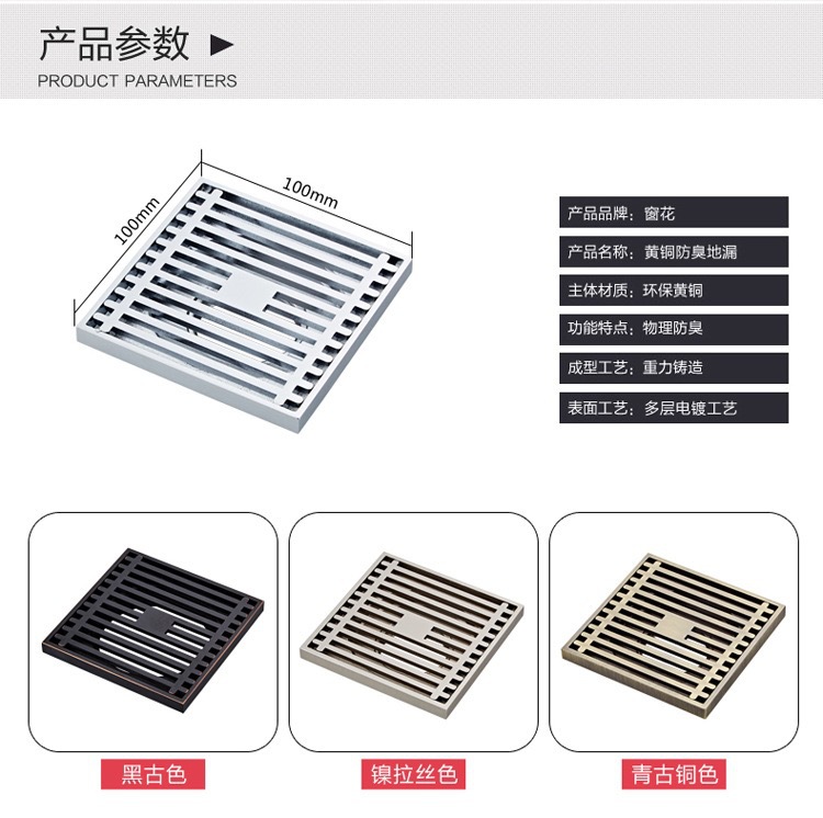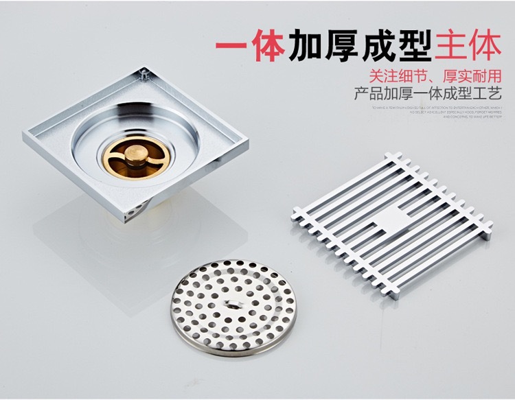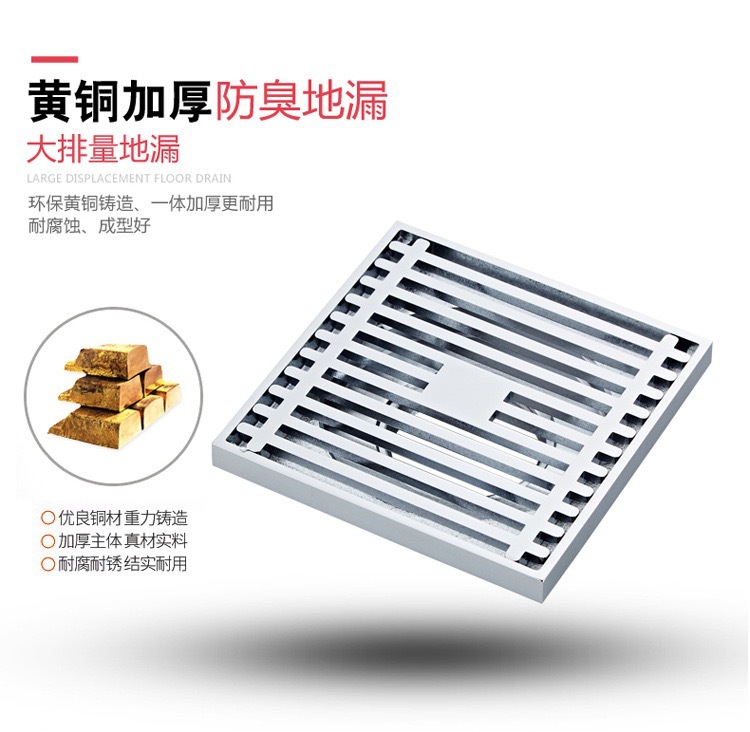 Cobre ingenio fabricación cuadrado desodorante fila rápida núcleo de plástico Desagüe de piso de cobre gran desplazamiento cuadrado desagüe de piso viejo fabricante
