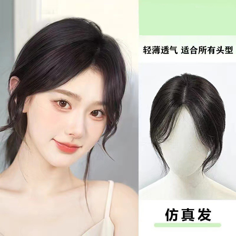 Peluca cabeza femenina pieza de reemplazo de cabello de longitud media flequillo de ocho palabras que cubre el cabello esponjoso blanco aumento de volumen belleza dragón barba flequillo peluca pieza