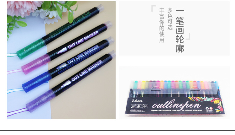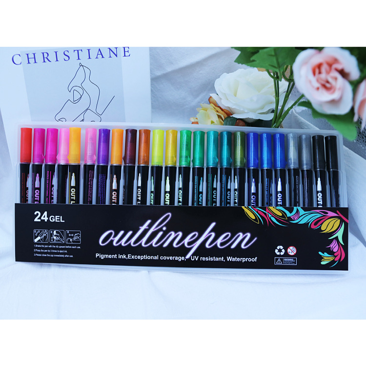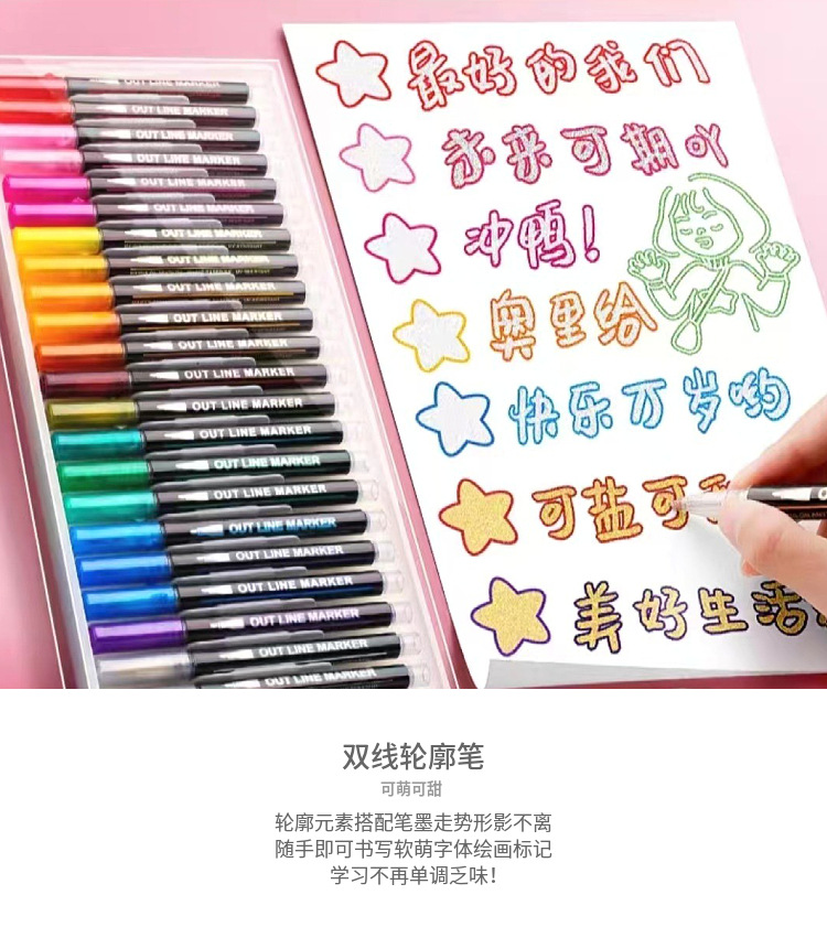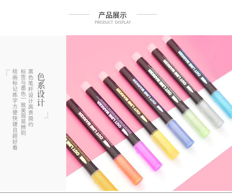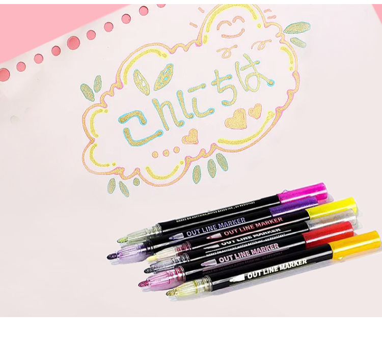 Doble línea de contorno pluma fantasía metal 12 color DIY mano cuenta multicolor Navidad resaltador tarjeta de felicitación pluma de contorno al por mayor