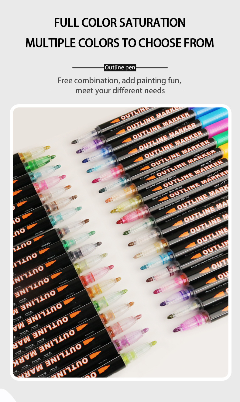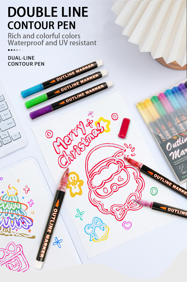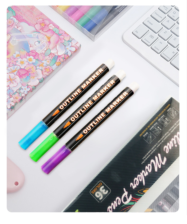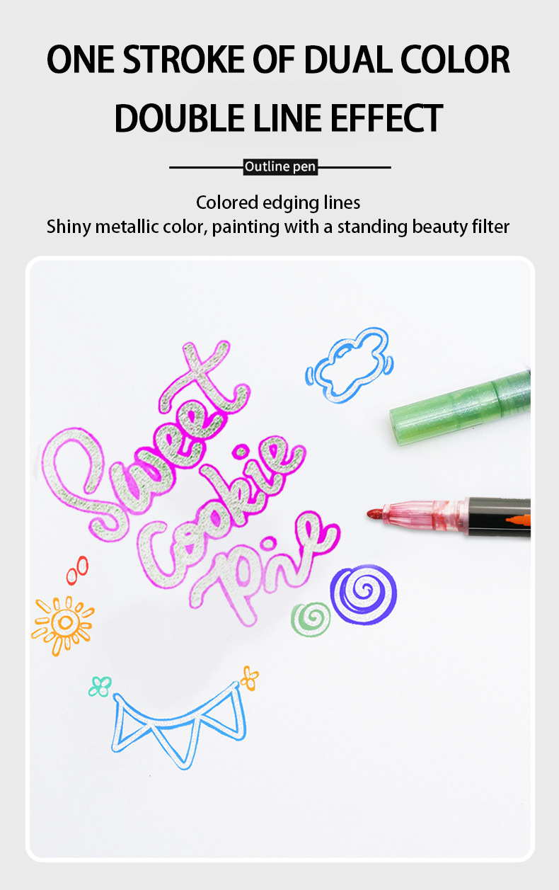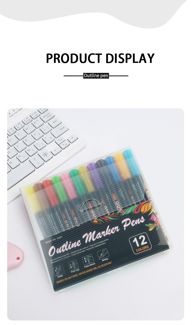 Fantasía doble línea de contorno de la pluma 8 colores 12 colores traje DIY resaltador pluma de contorno estudiante pintura pluma de marcado de dos colores
