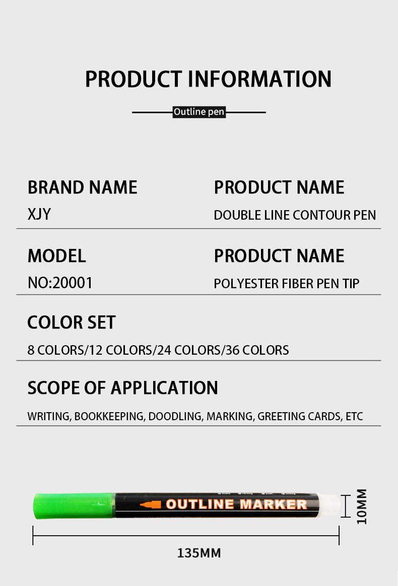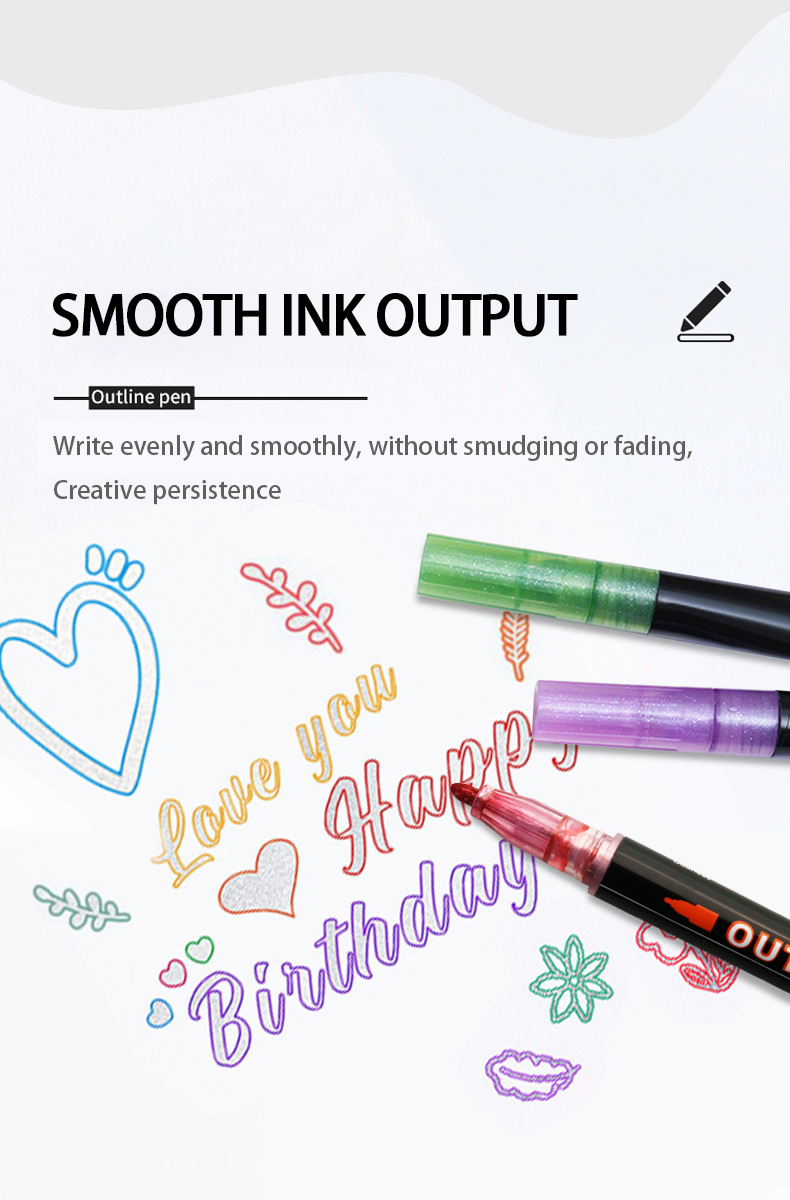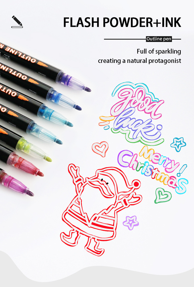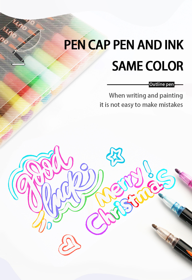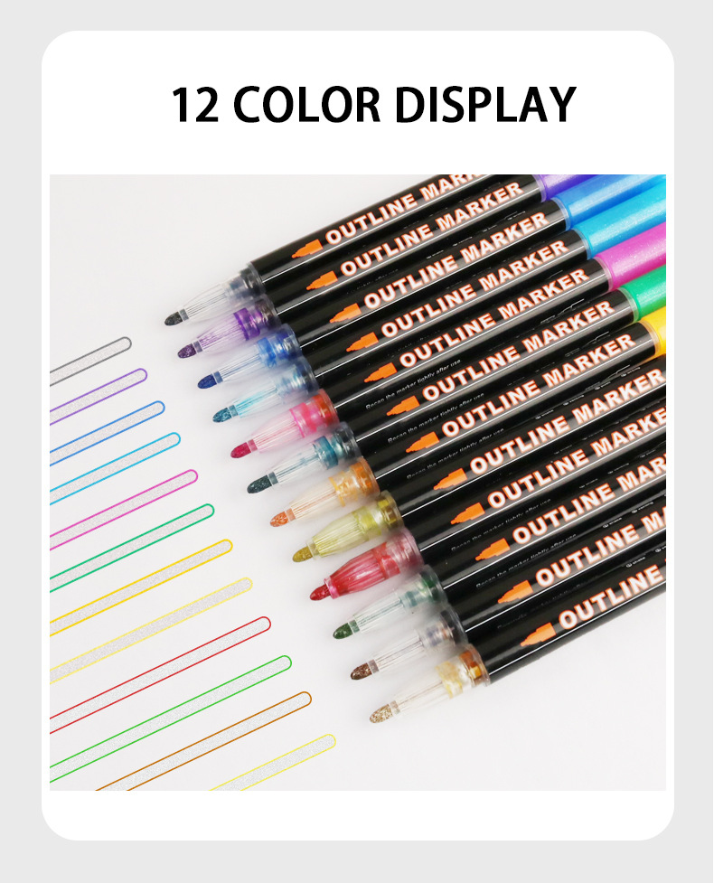 Fantasía doble línea de contorno de la pluma 8 colores 12 colores traje DIY resaltador pluma de contorno estudiante pintura pluma de marcado de dos colores