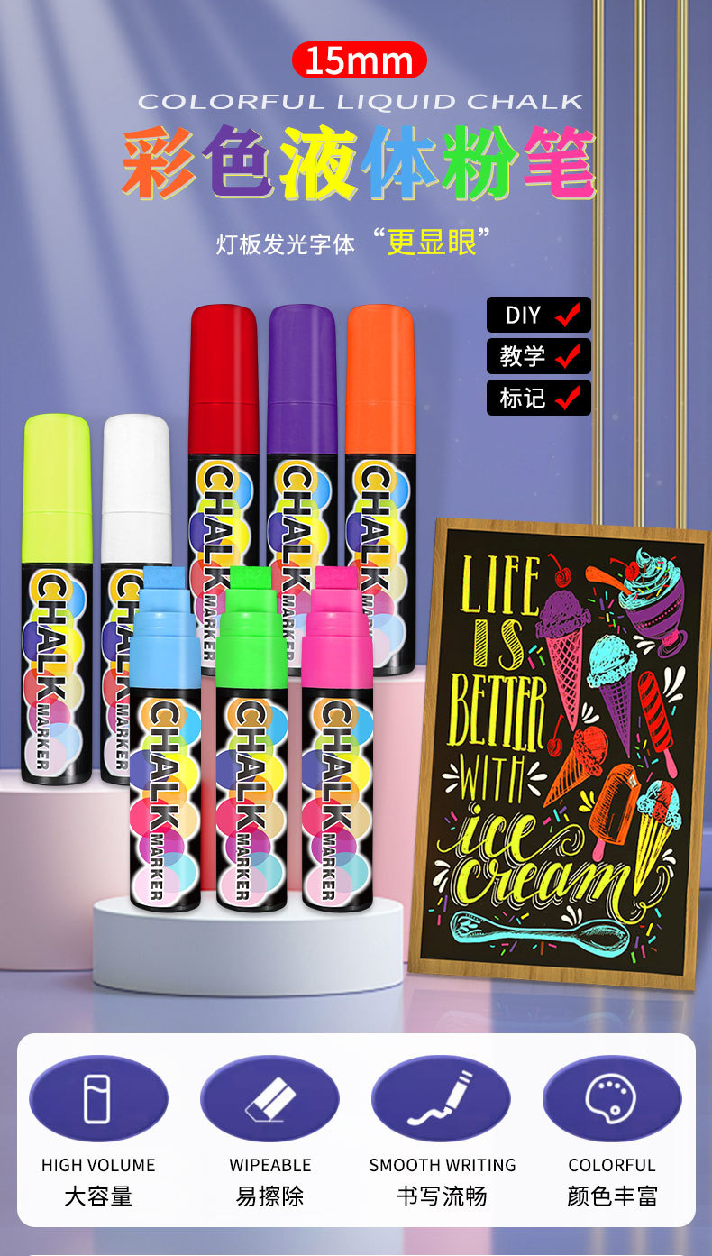 Placa fluorescente LED Somic Pluma especial 15mm Publicidad Tavern Póster Pluma borrable Graffiti Marcador Líquido Tiza