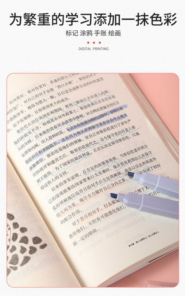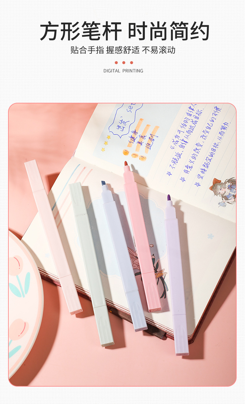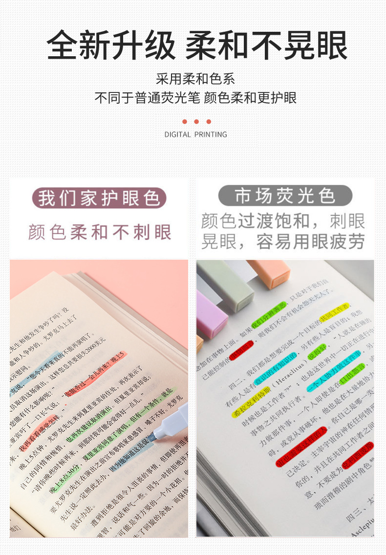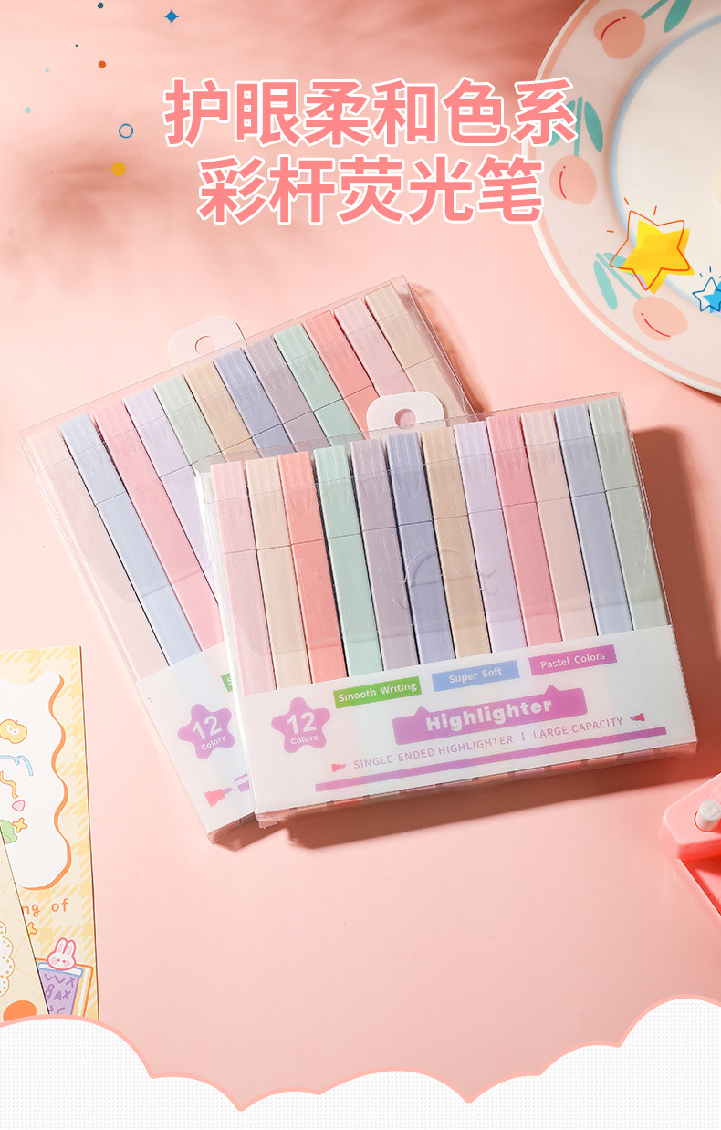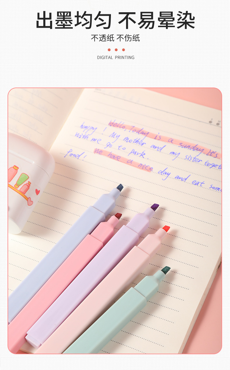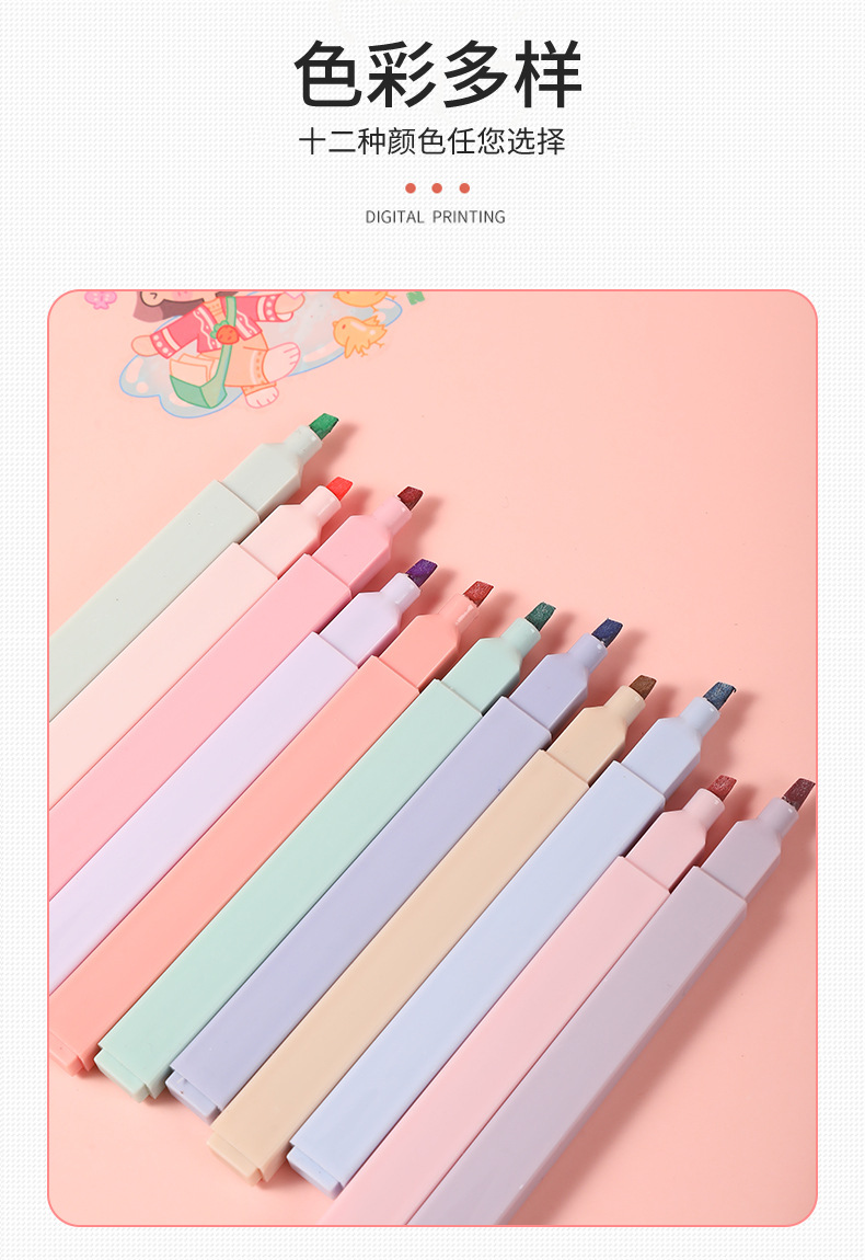 Venta caliente transfronteriza resaltador de cabeza oblicua protección para los ojos pluma de marcado clave de color en caja pluma de diario de Estudiante de alto aspecto al por mayor