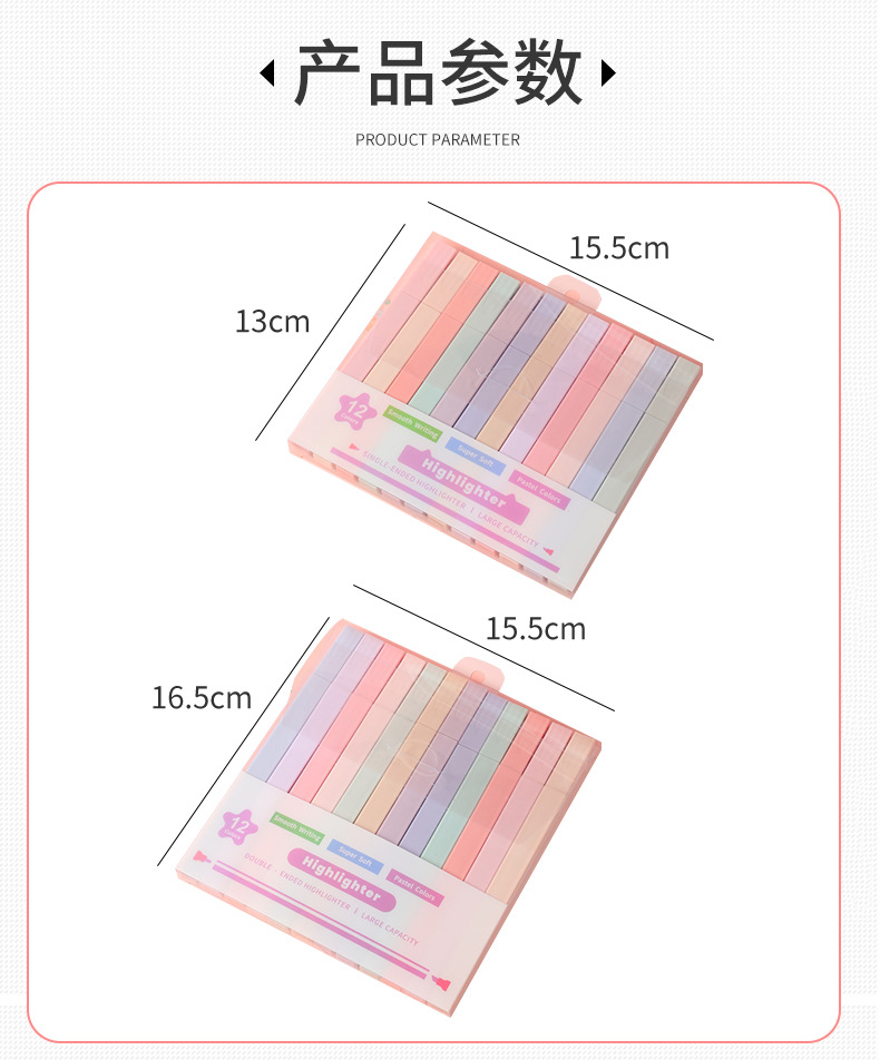 | Color de recarga | Highlighter de 12 colores de una sola cabeza,Resaltador de 12 Colores de doble cabeza |