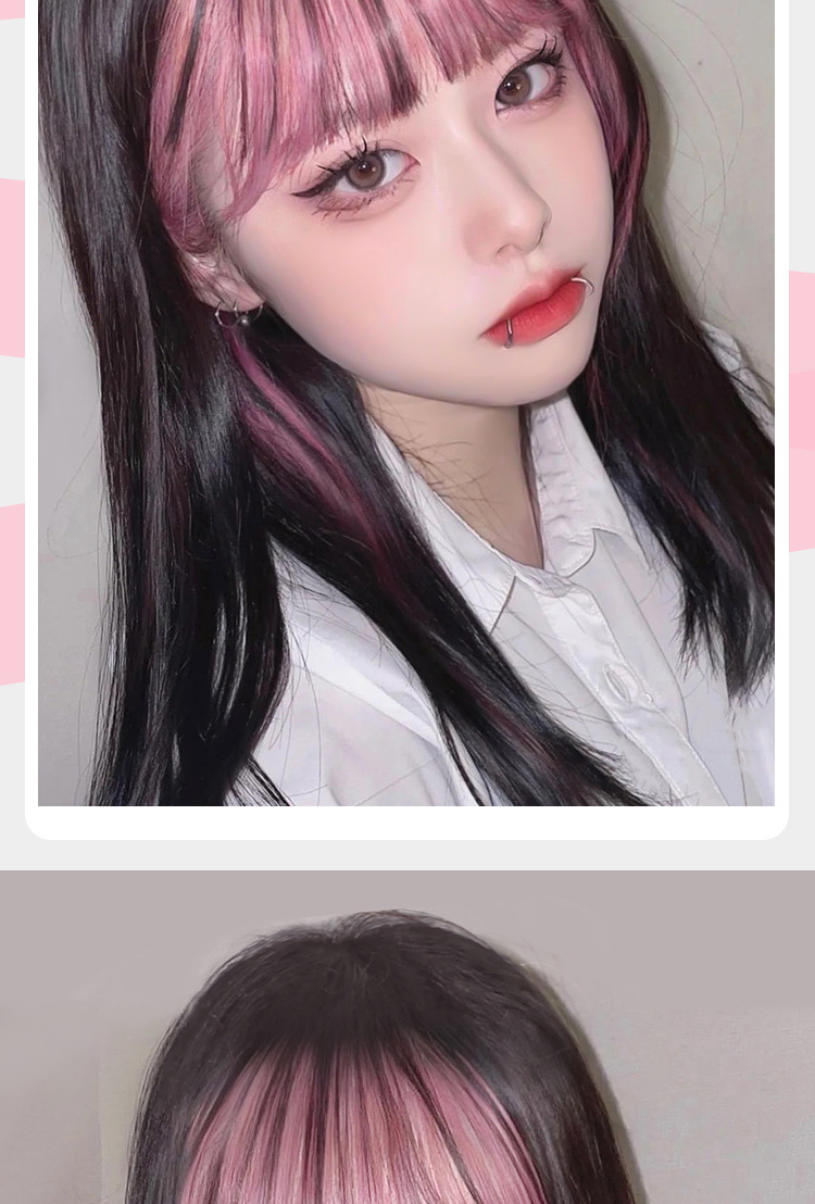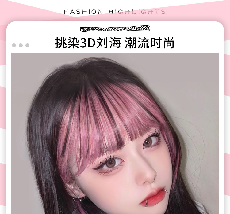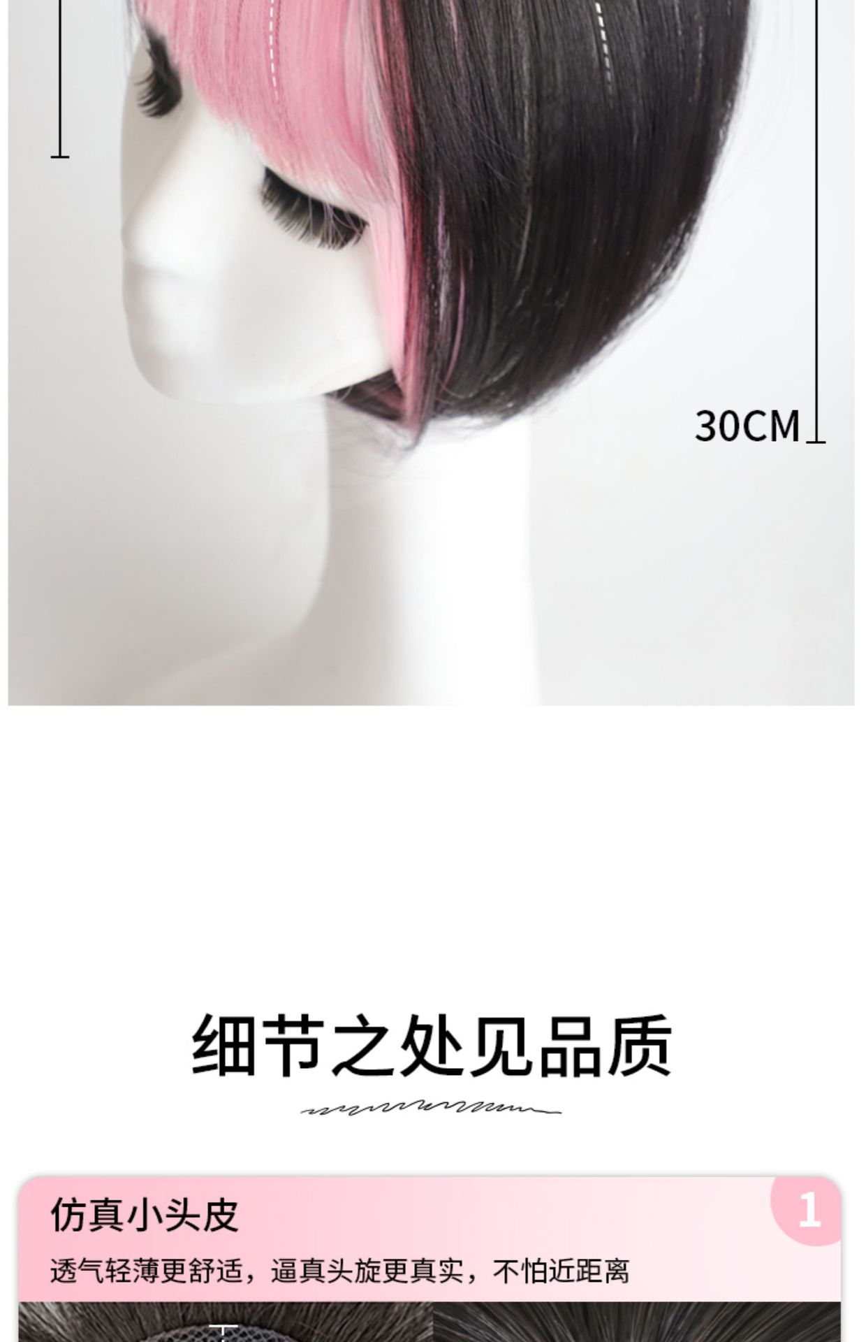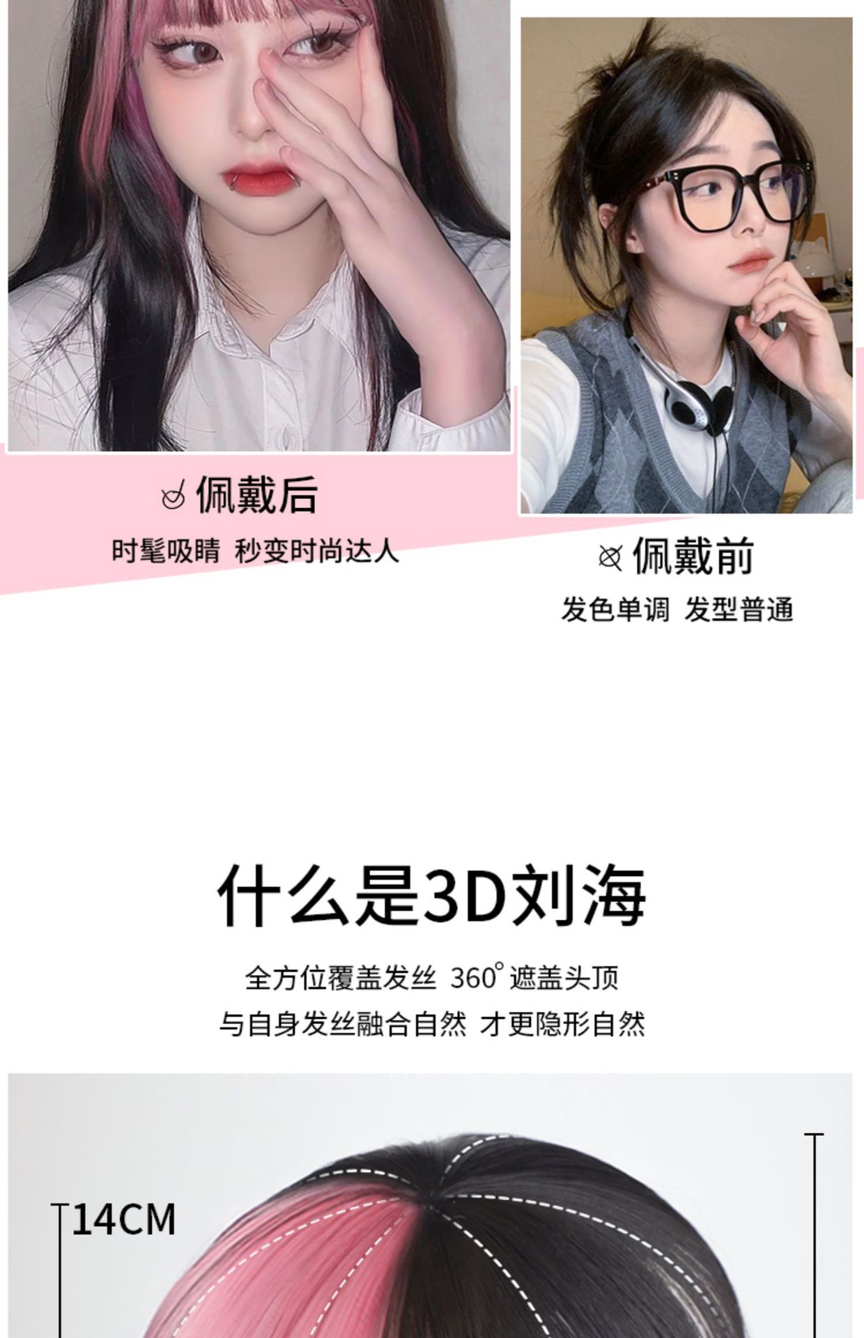 3D teñido flequillo peluca cabeza femenina frente natural invisible sin costura pieza de pelo Pelo aire Rosa flequillo falso