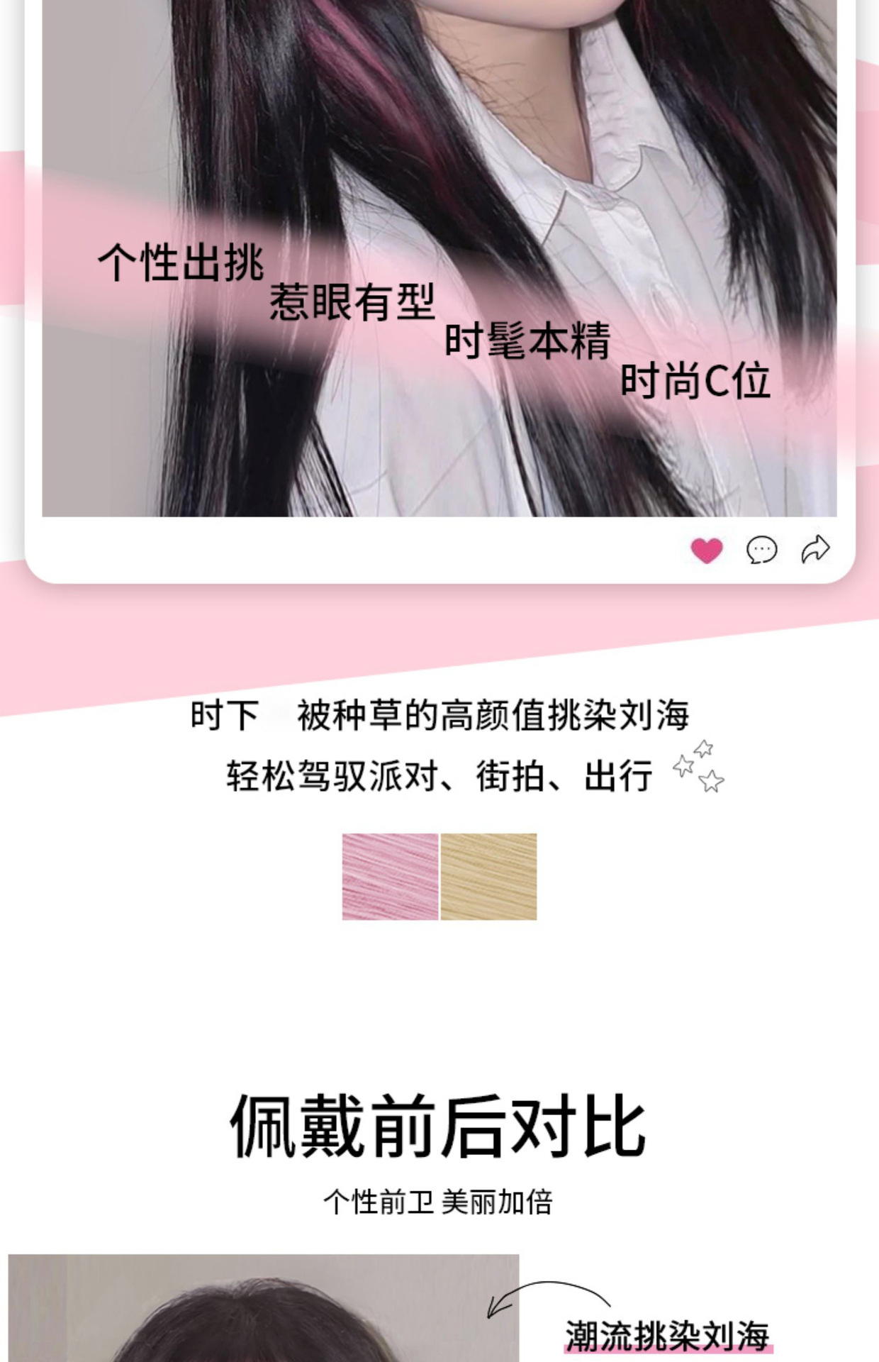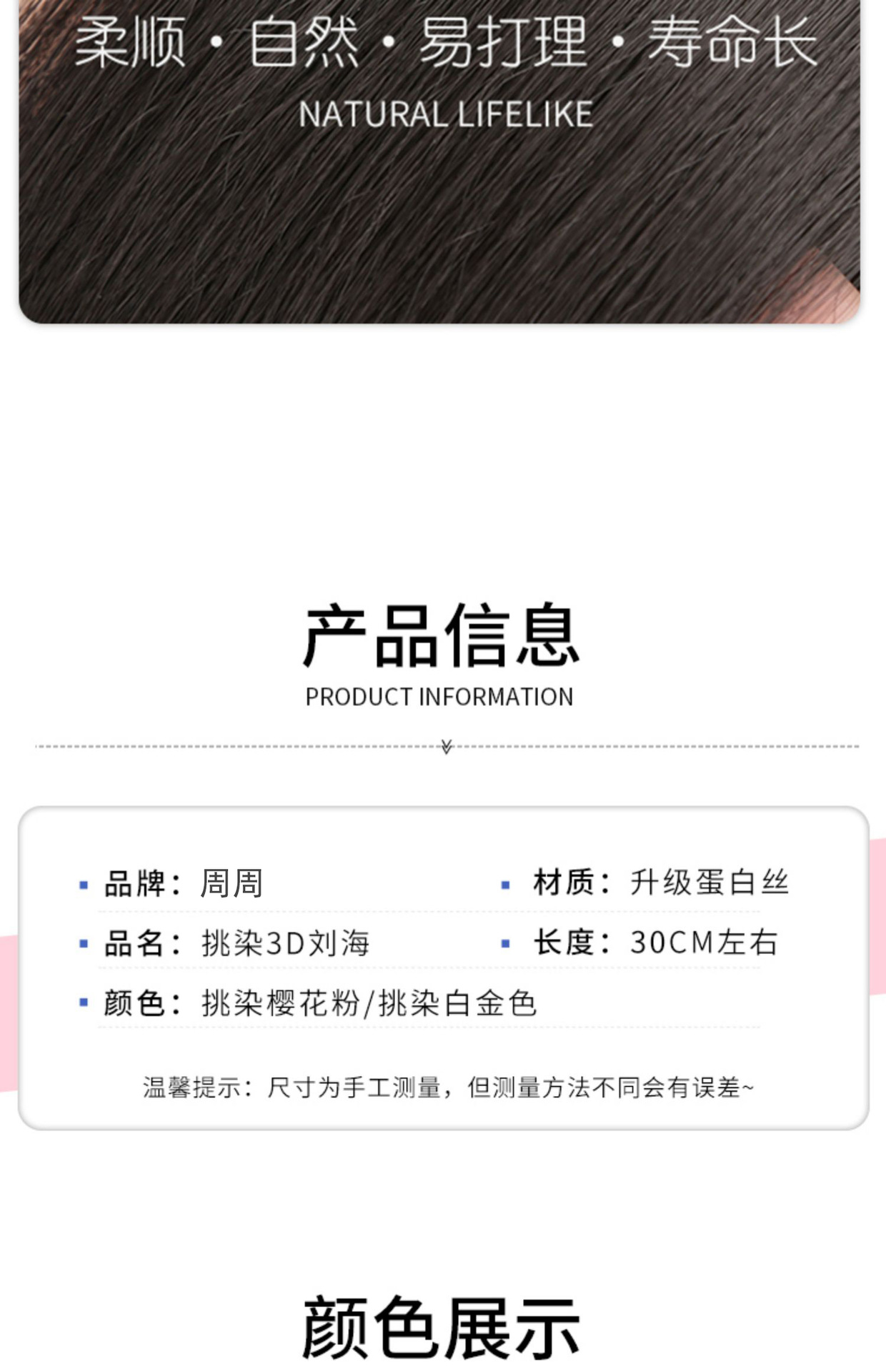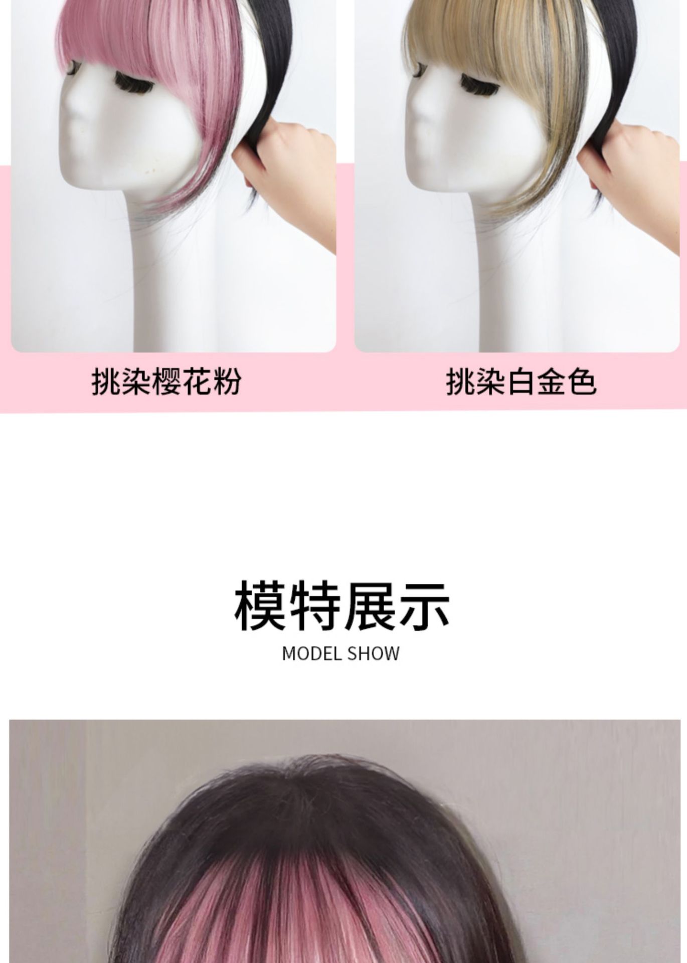 | Color | Bangs 3D teñido-Oro Blanco,3D Bangs teñido-Polvo de flor de cerezo |