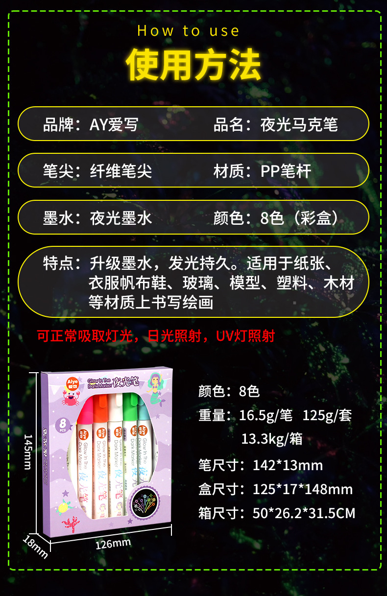| Color de recarga | Traje de 8 colores,Polvo luminoso,Naranja luminosa,Verde luminoso,Azul luminoso,Rojo luminoso,Blanco luminoso,Amarillo luminoso,Oro luminoso |