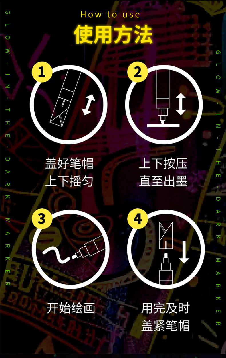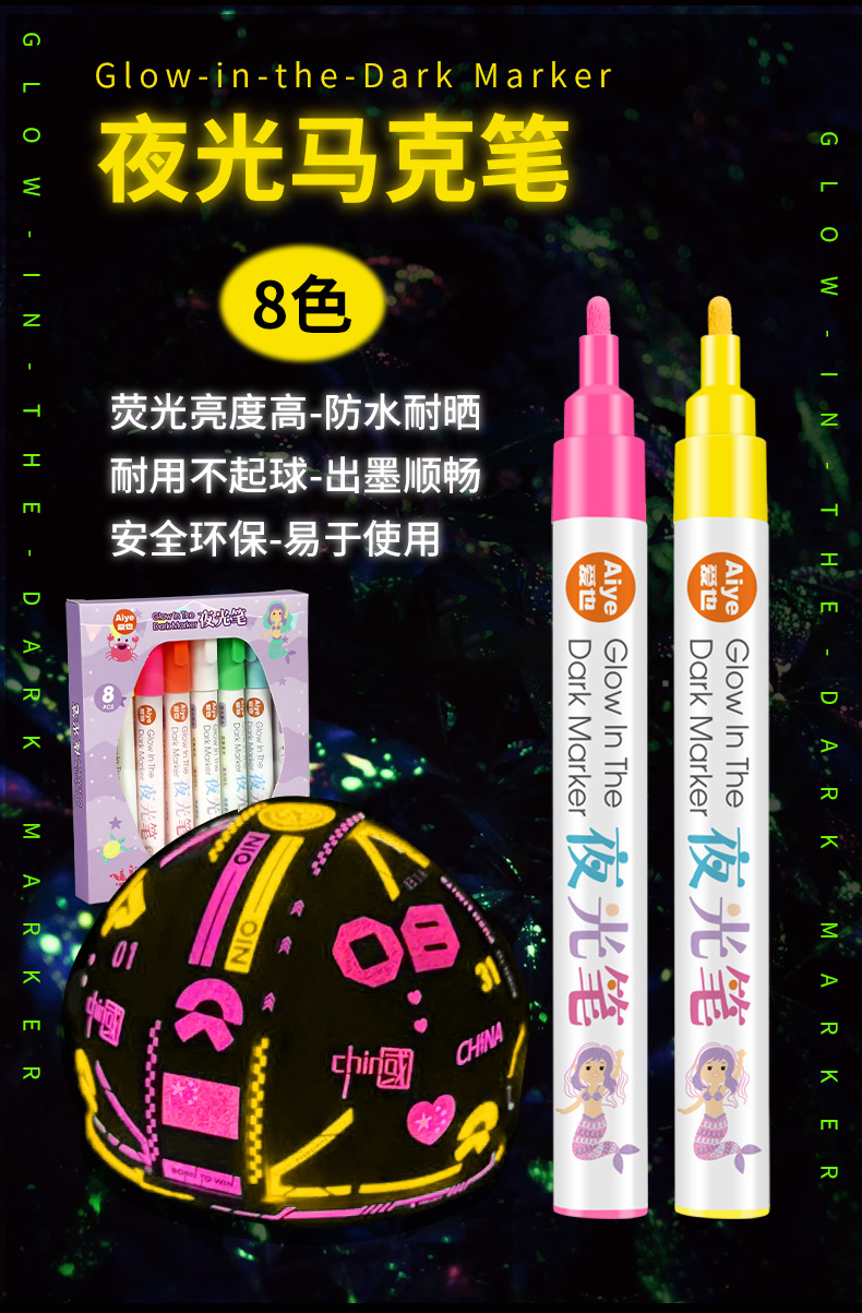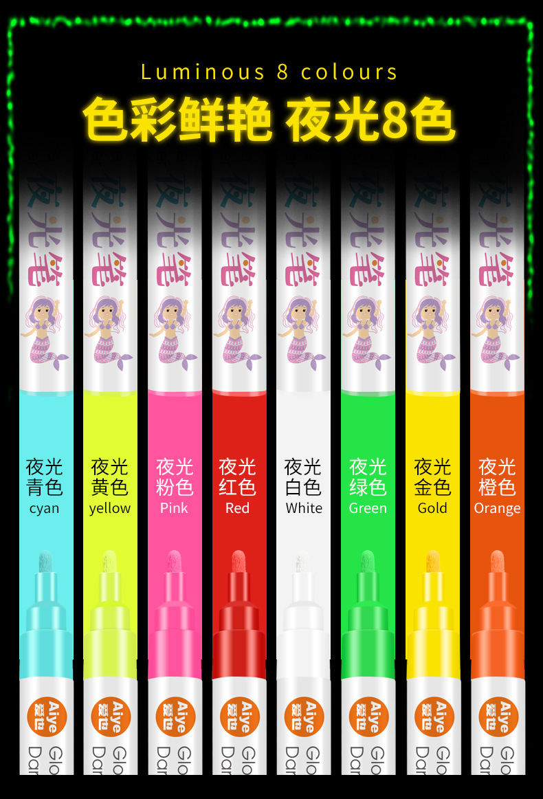 Aiye bolígrafo luminoso de color explosivo transfronterizo pintado a mano estudiante brillante graffiti mano creativo a base de agua marcador luminoso