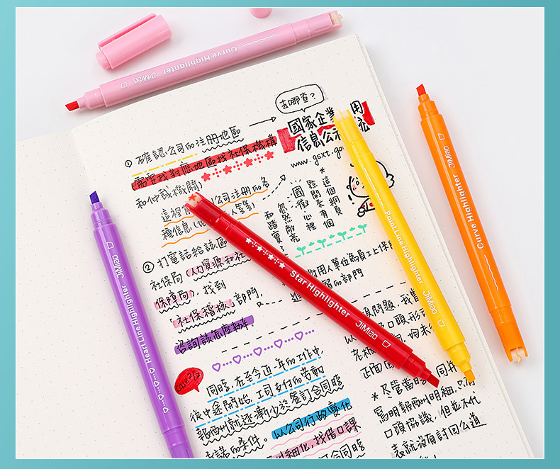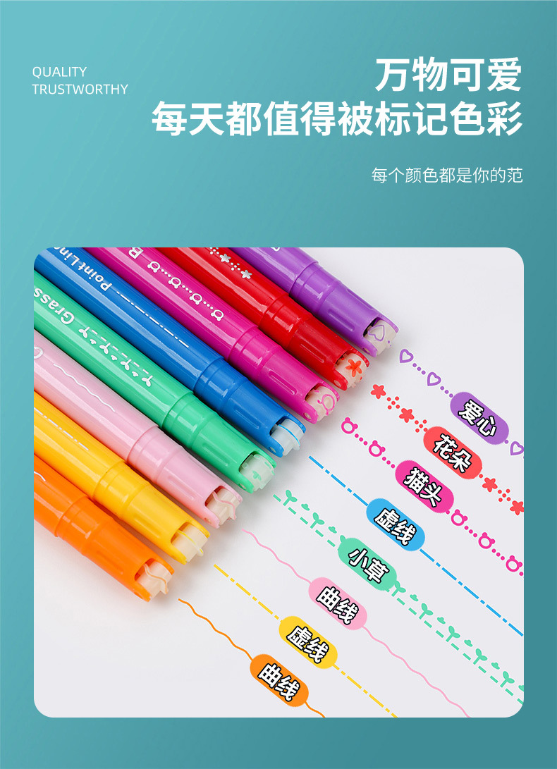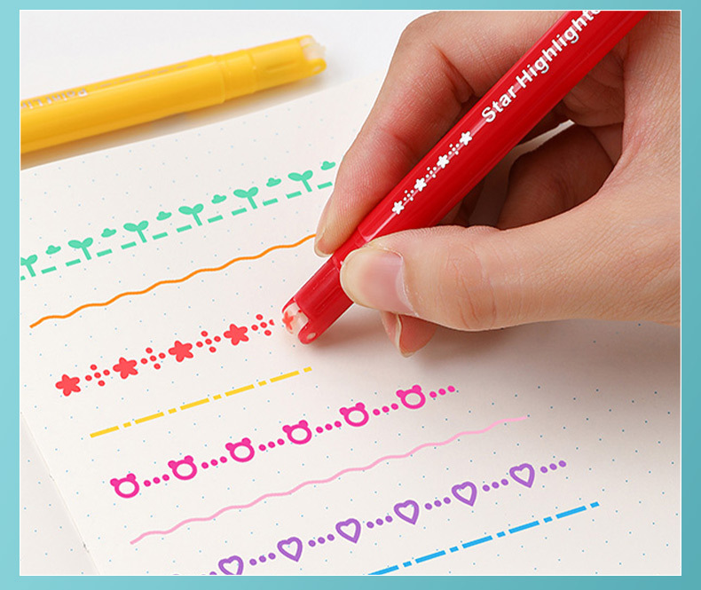 Fábrica al por mayor pluma de contorno DIY Diario en forma de flor de doble cabeza curva pluma estudiante graffiti dibujo clave marca resaltar pluma