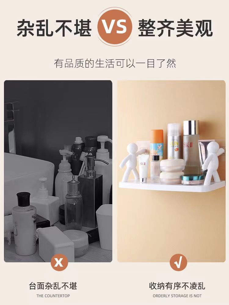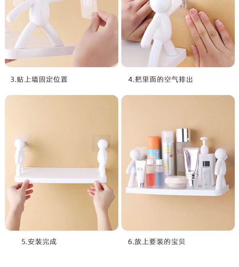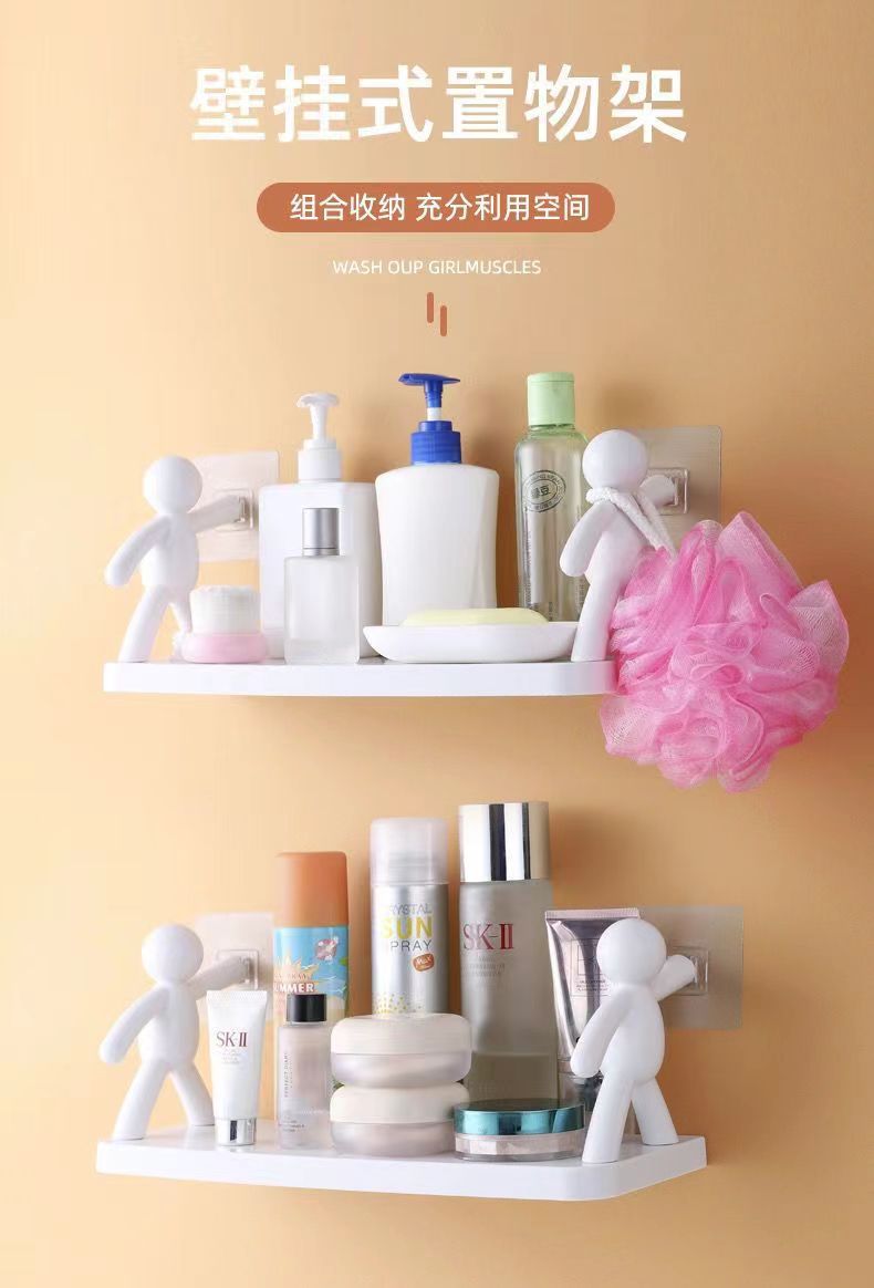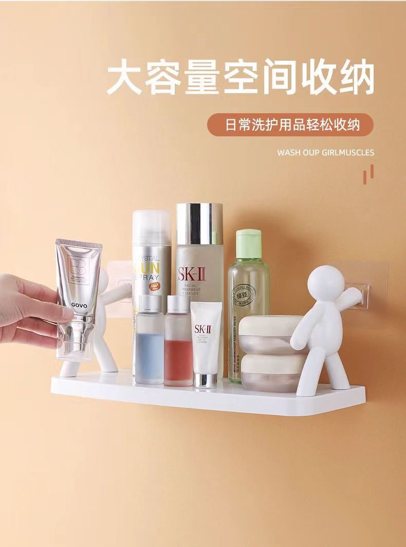 Cocina sin perforaciones hombre pequeño estante de almacenamiento montado en la pared dormitorio doméstico cosméticos escritorio cocina estante de almacenamiento gancho de baño