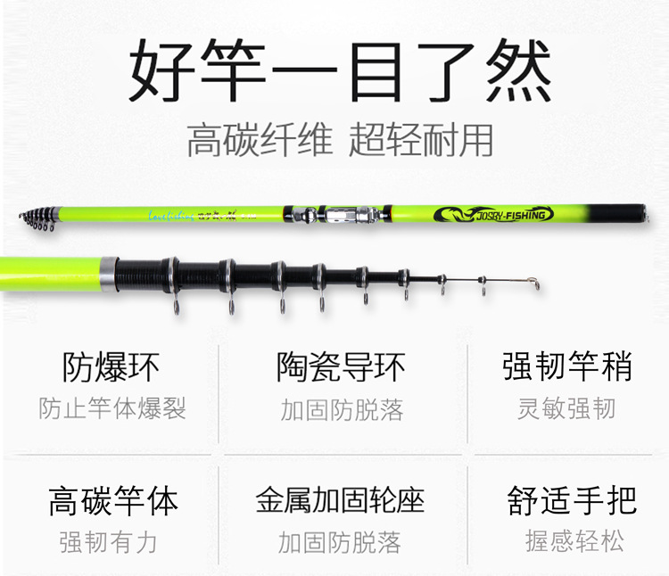 Los fabricantes producen varilla de roca de carbono mano y mar de doble uso varilla de pesca 3,6 m varilla de pesca de sección corta traje de roca conjunto completo