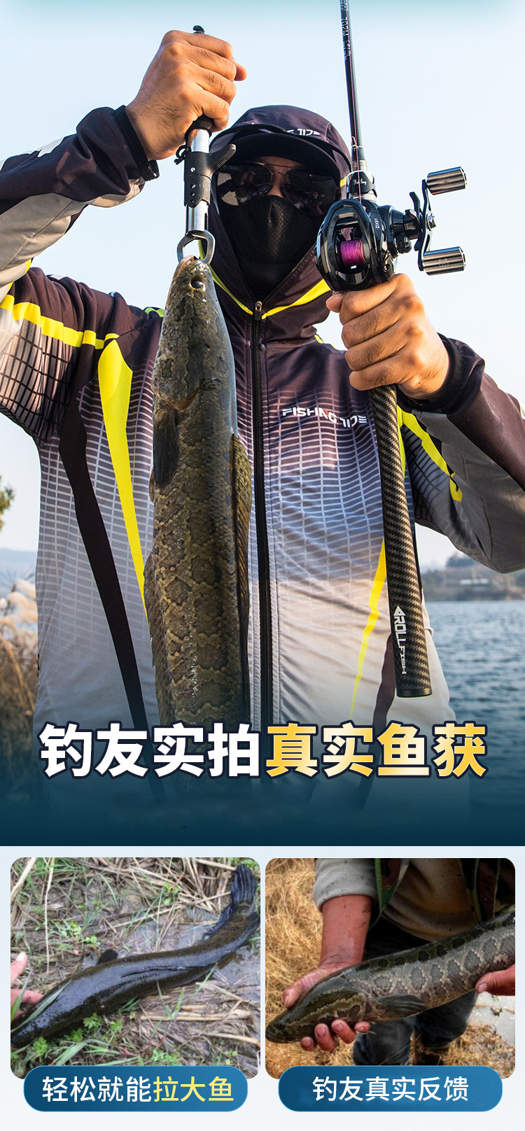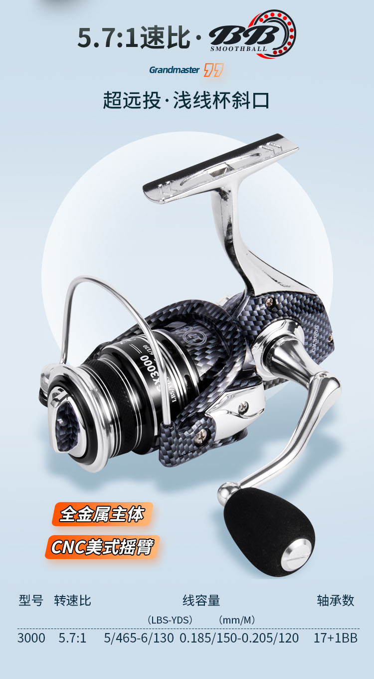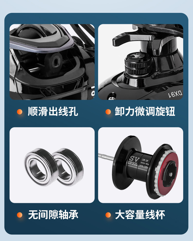 2,1 m mango de la pistola + mano izquierda Araña negra Rueda de gota de agua + cebo + línea