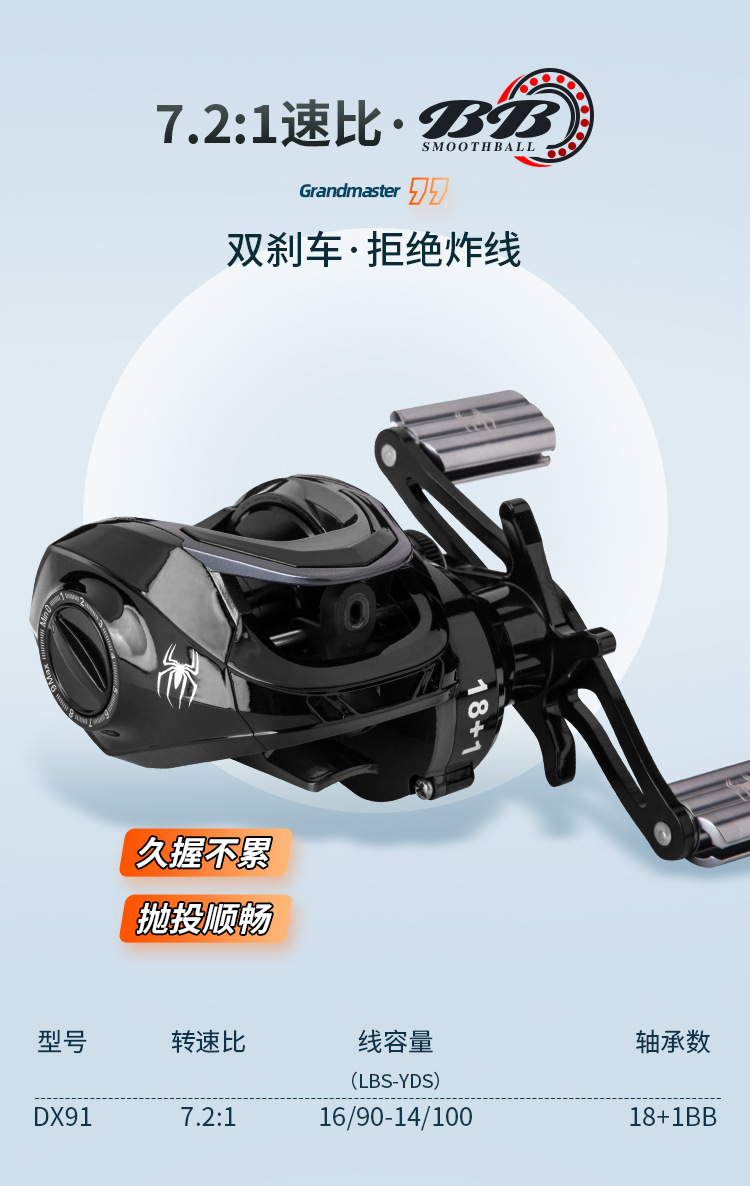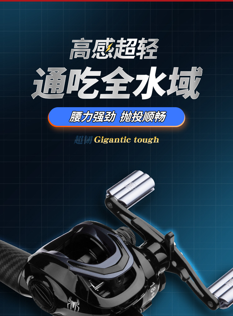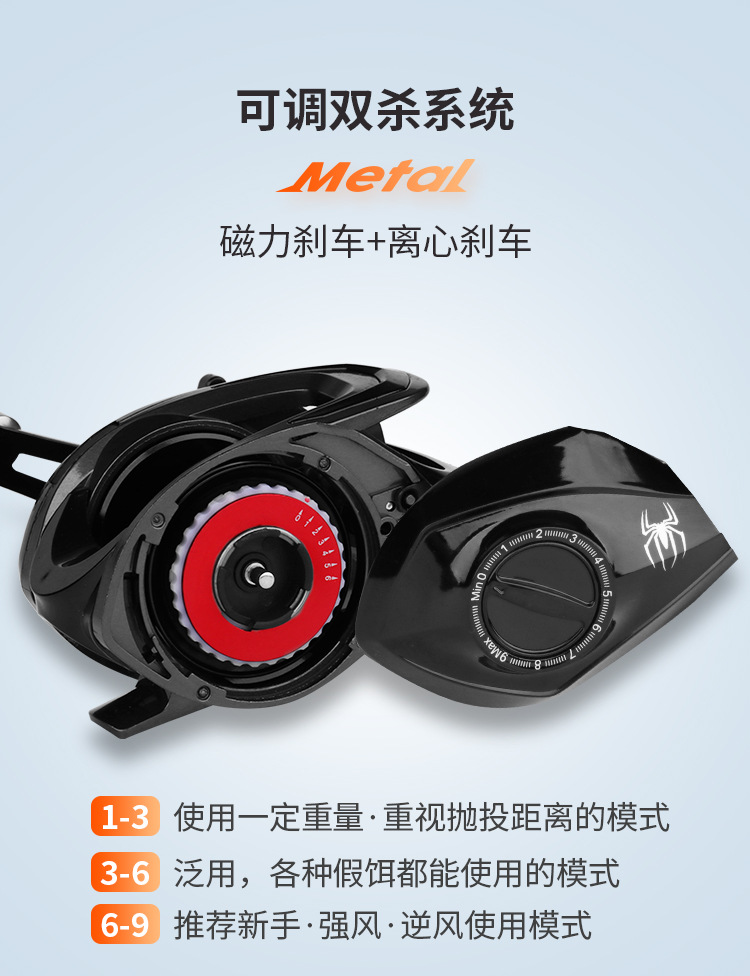 1,8 m mango de pistola + mano izquierda Araña negra Rueda de gota de agua + cebo + línea