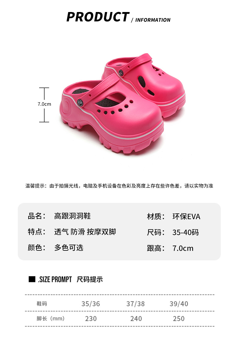 Eva agujero zapatillas de moda de verano de las mujeres al aire libre aumento de la altura zapatillas hogar interior hogar antideslizante agujero zapatos