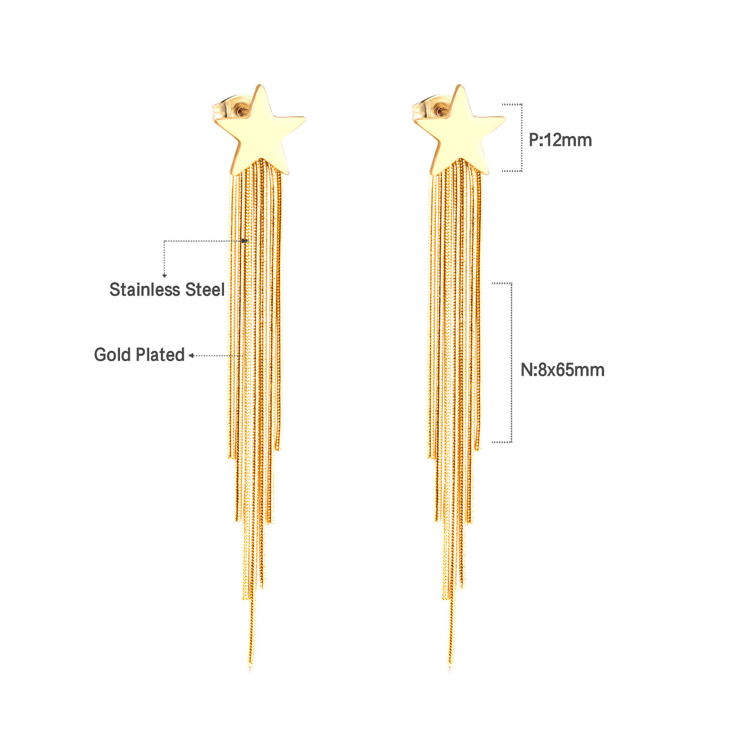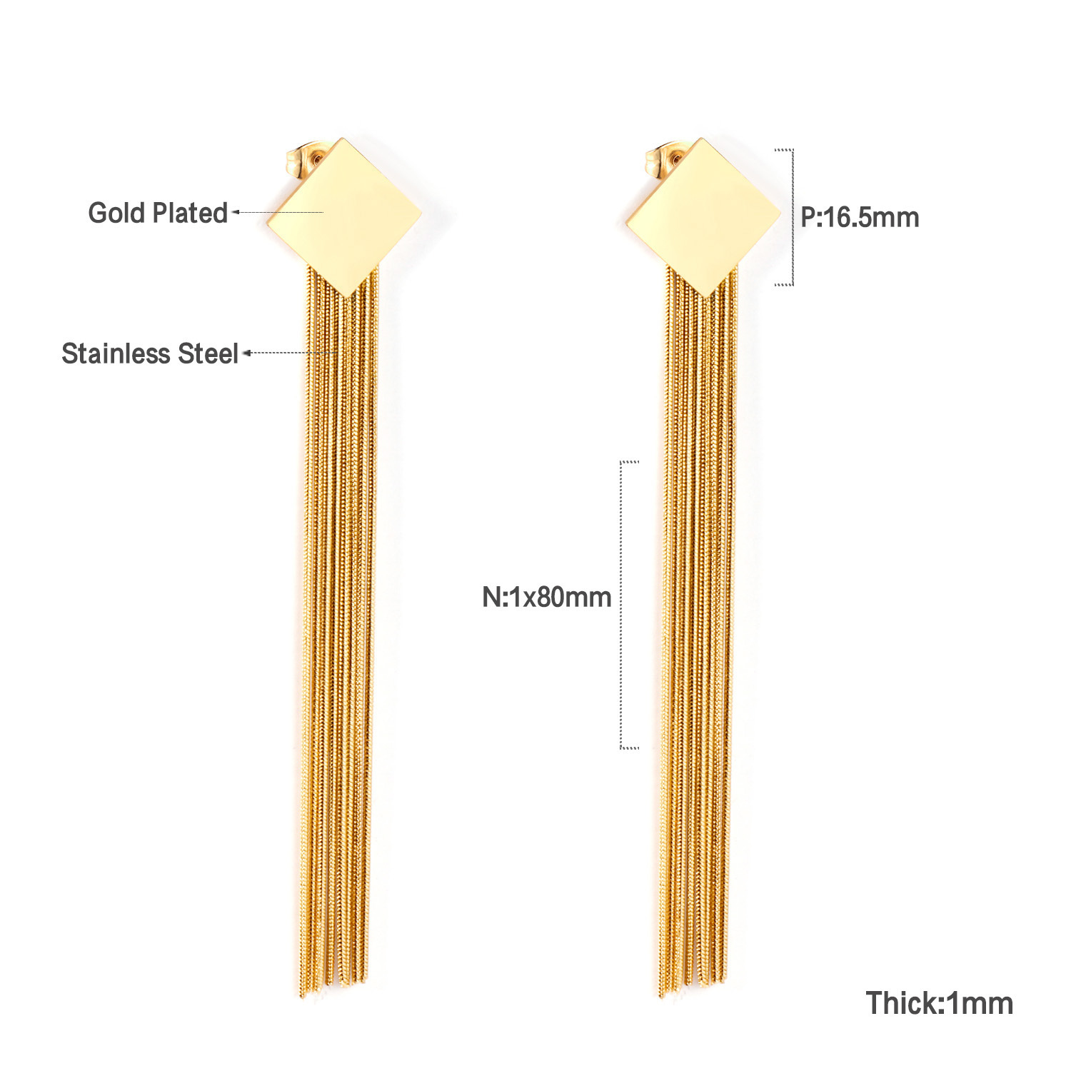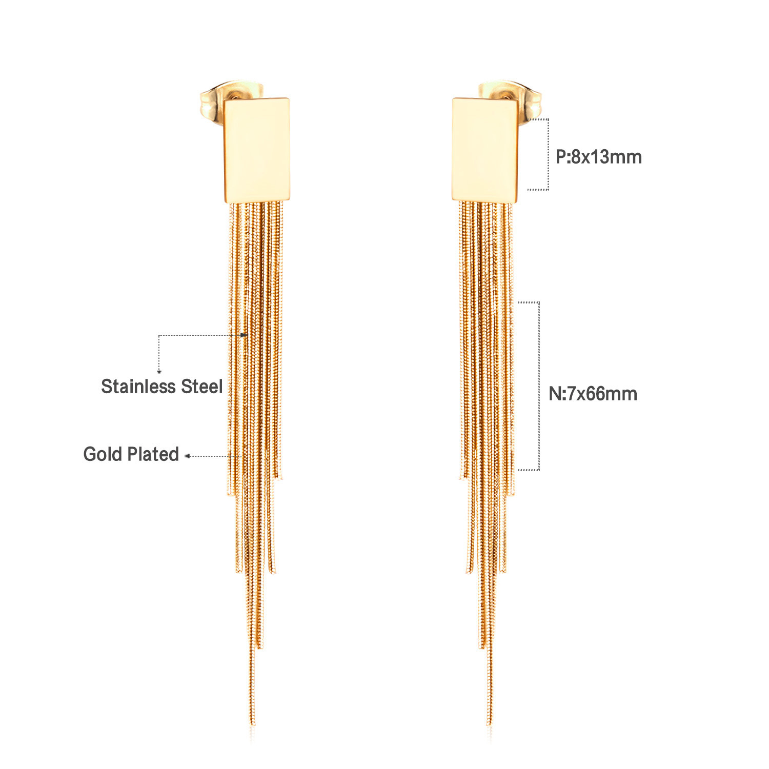 Pendientes europeos y americanos Luz de lujo de alta calidad larga cadena de acero inoxidable nicho retro geométrico transfronterizo especial borla pendientes
