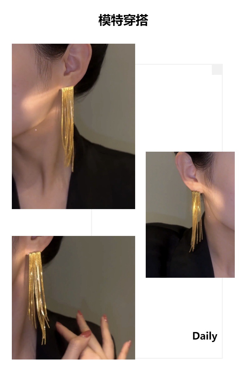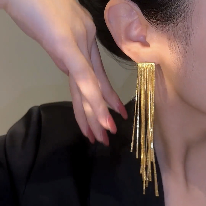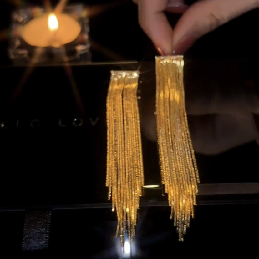 Pendientes de borla largos de alta gama pendientes de cadena de adelgazamiento dulce fresco elegante de las mujeres pendientes de lujo de luz de oro real