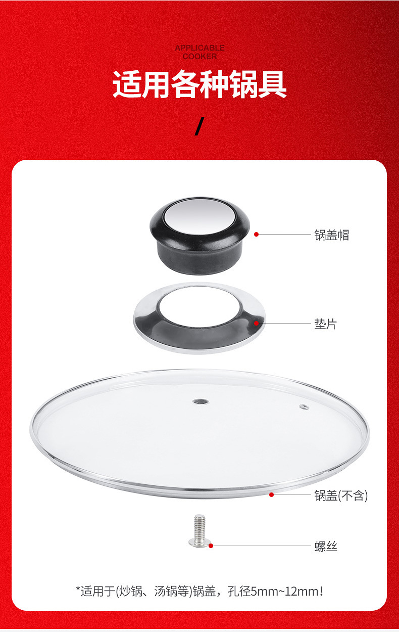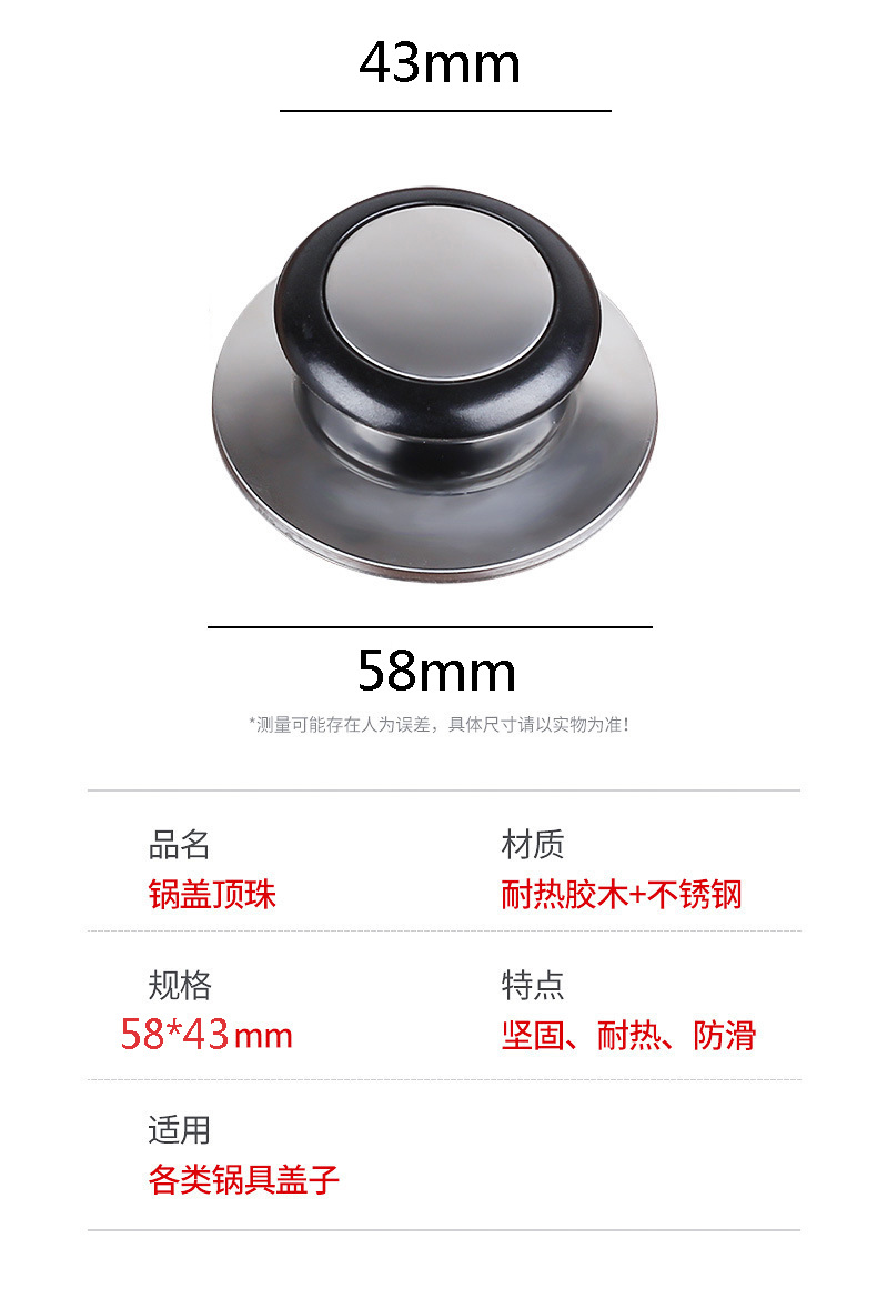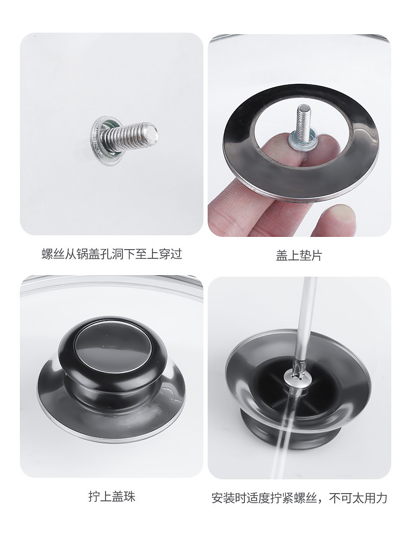Cubierta de la cubierta de la olla cubierta de baquelita + mango de acero inoxidable cubierta de vidrio accesorios de cuentas superiores mango de tapa de olla universal entrega de una pieza