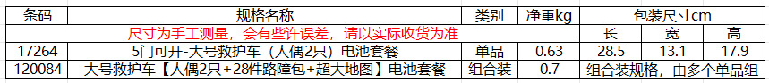 | Colores | 5 puertas se pueden abrir-Paquete de batería de ambulancia grande (2 muñecas),Ambulancia grande [2 muñecas, 28 paquetes de barricadas, mapa grande] paquete de batería |