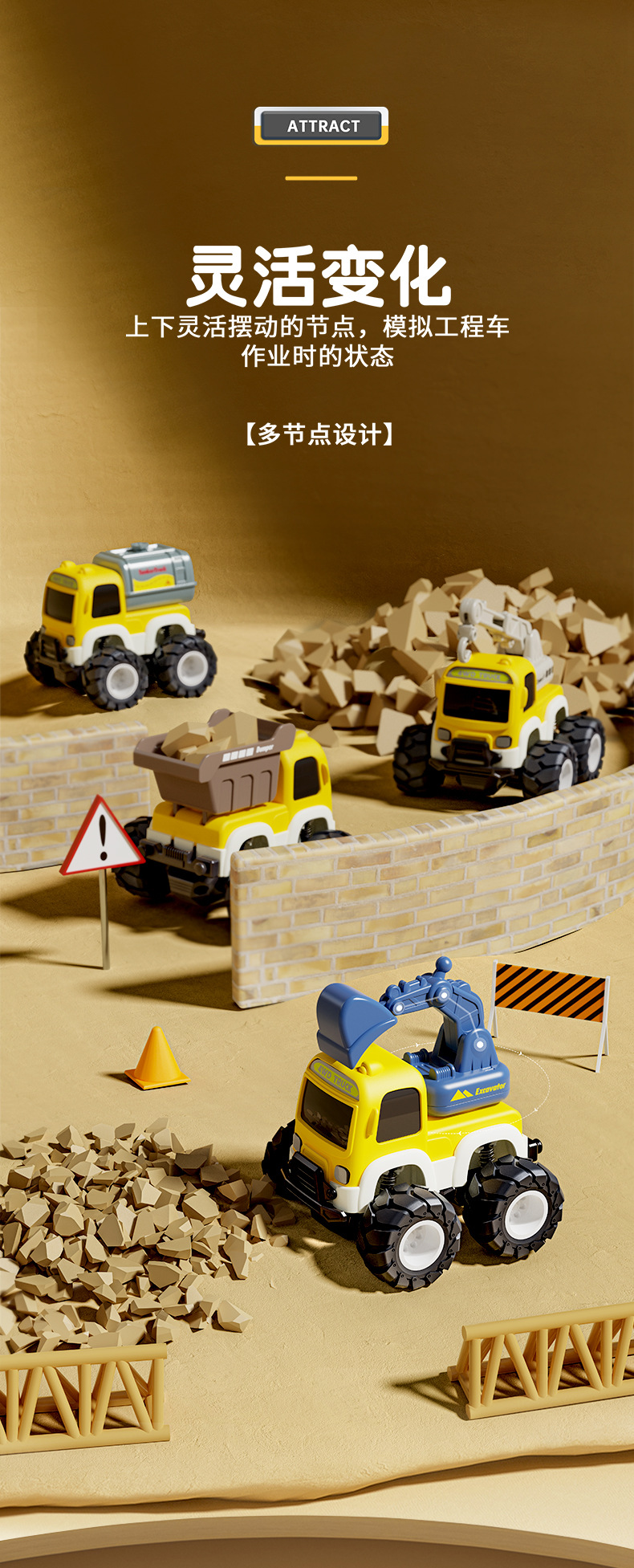 Vehículo de ingeniería todoterreno con tracción en las cuatro ruedas para niños excavadora niño inercia mini coche de juguete educativo coche generación TikTok