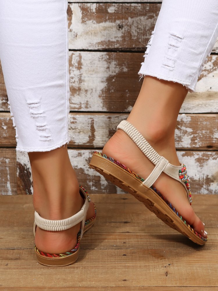 Sandalias romanas estilo de hadas de verano para mujer estudiante plano dedo del pie cómodo clip rhinestone chanclas tamaño extra grande 42 tamaño 43
