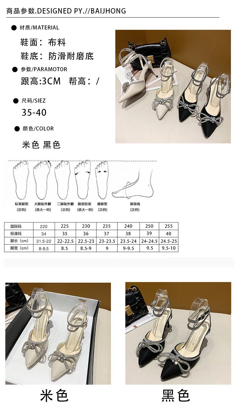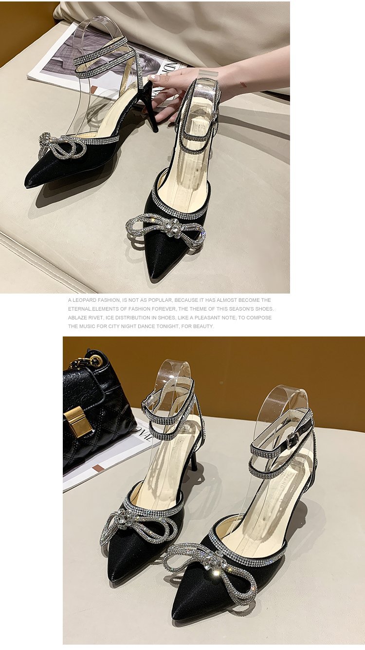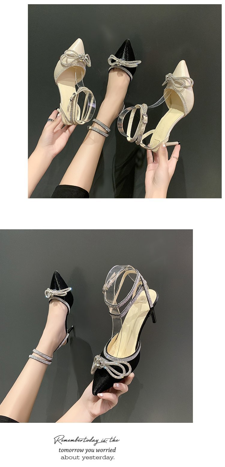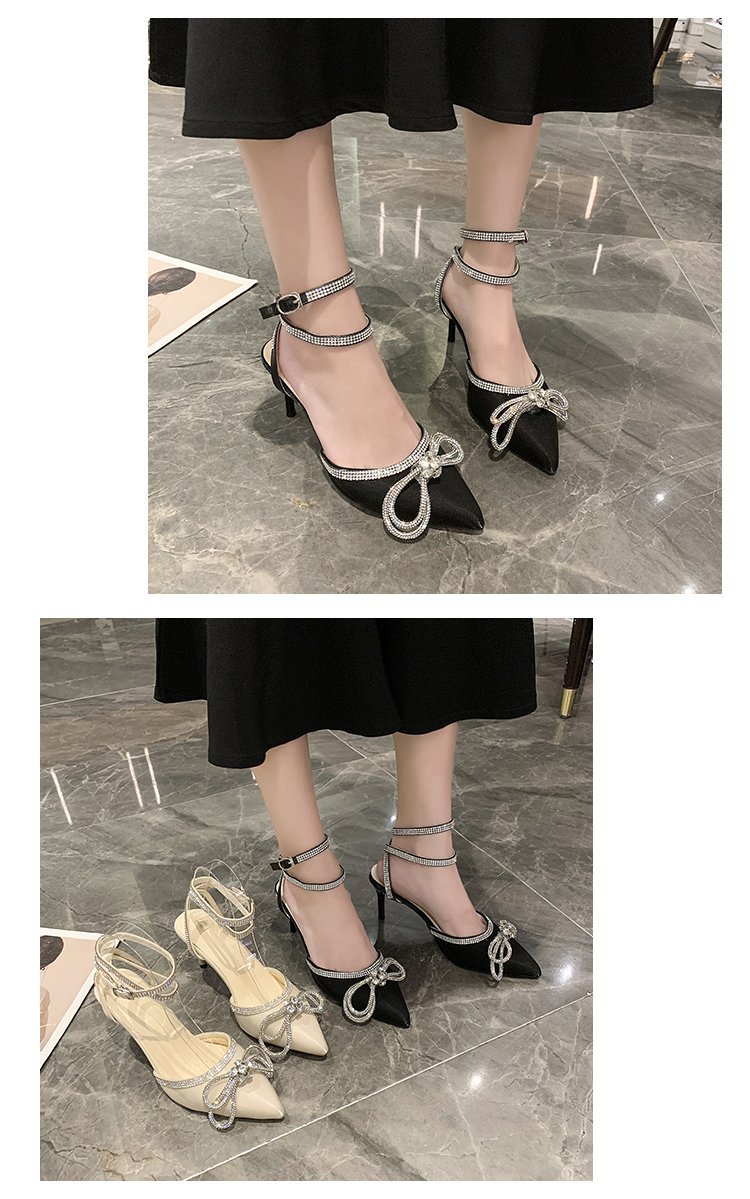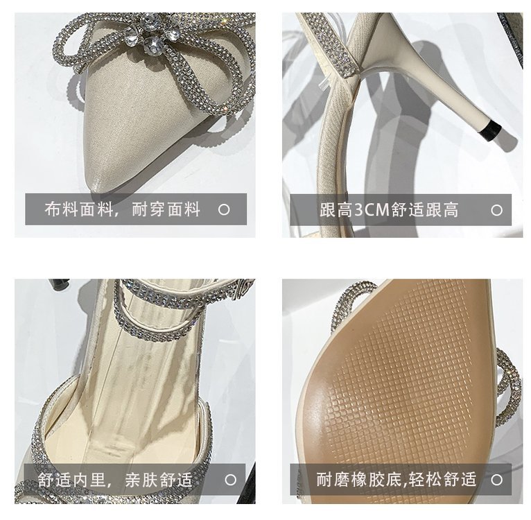 2022 verano nuevo estilo coreano arco dulce rhinestone hebilla Sandalias de tacón alto cerrado dedo del pie stiletto talón zapatos de mujer