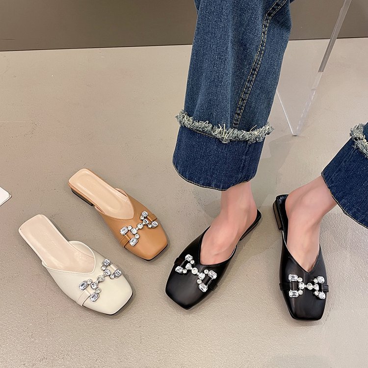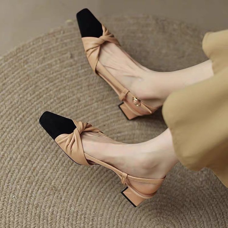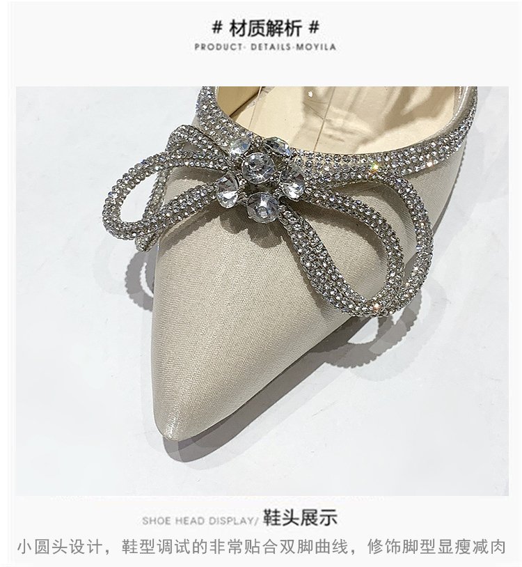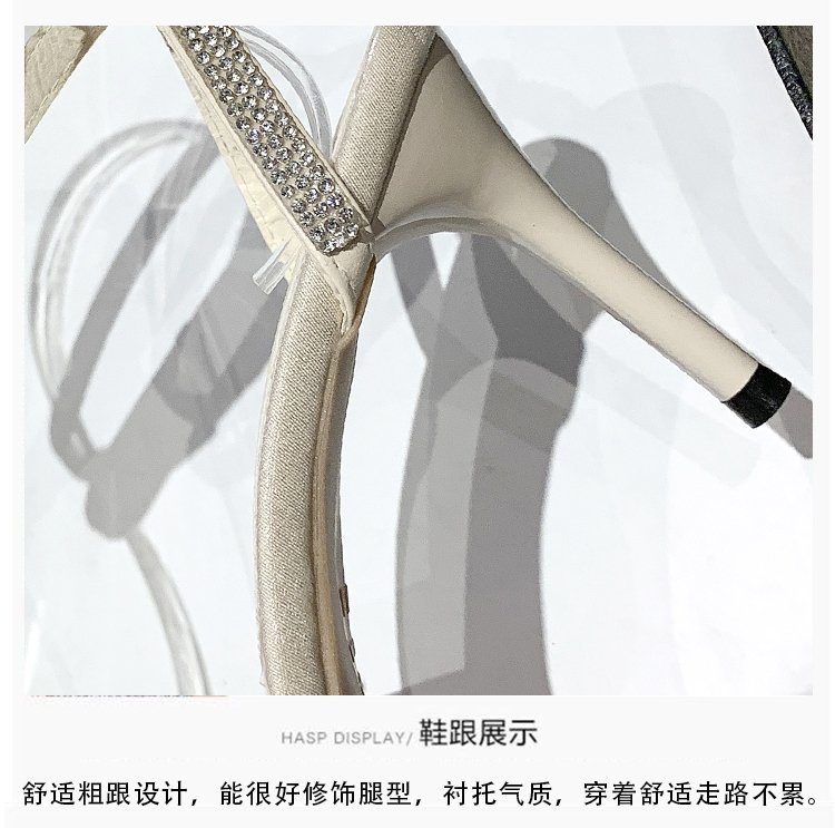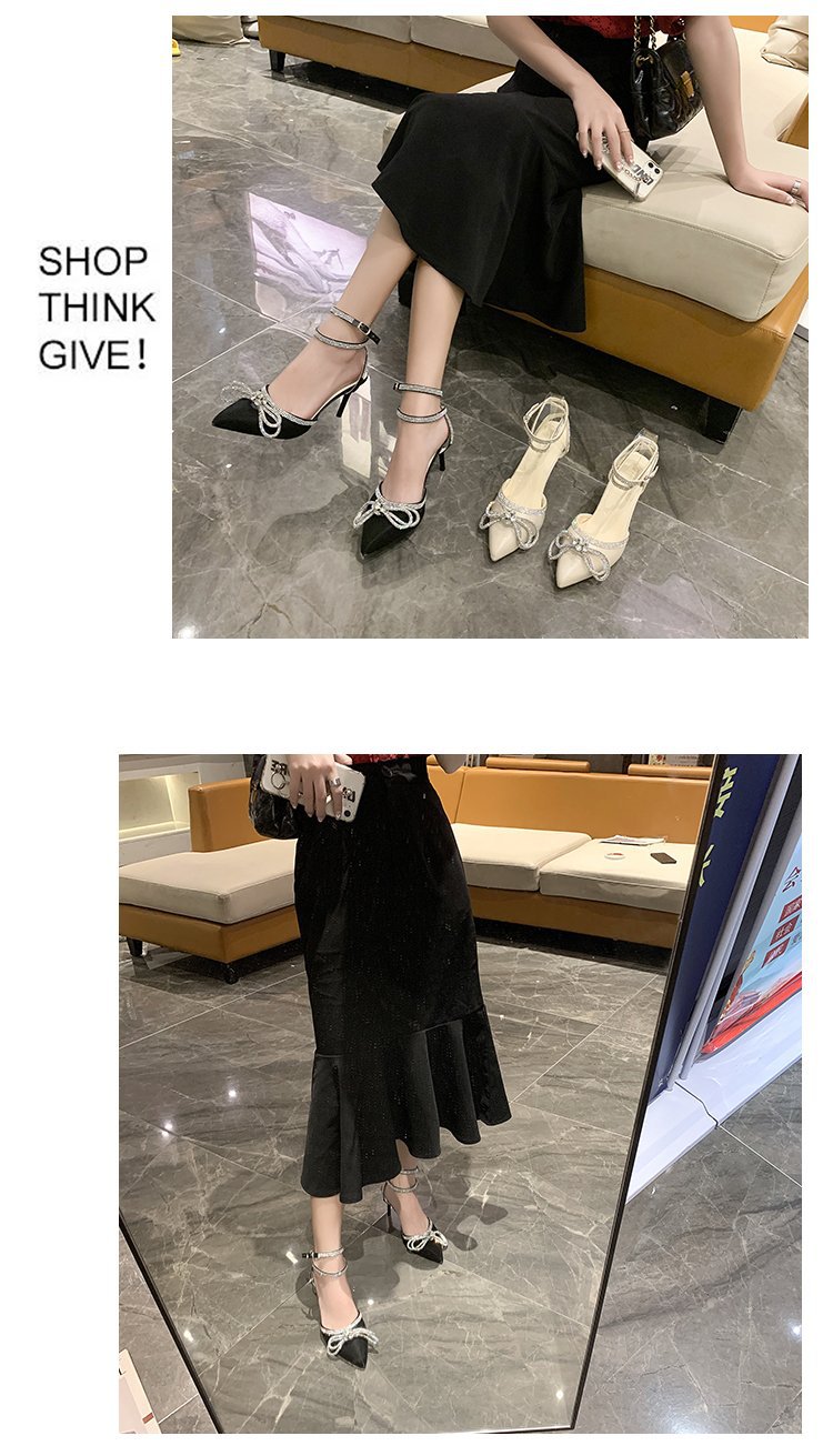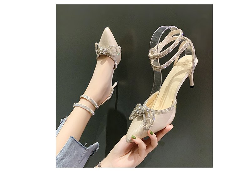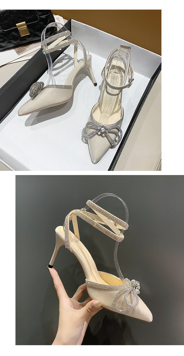 2022 verano nuevo estilo coreano arco dulce rhinestone hebilla Sandalias de tacón alto cerrado dedo del pie stiletto talón zapatos de mujer