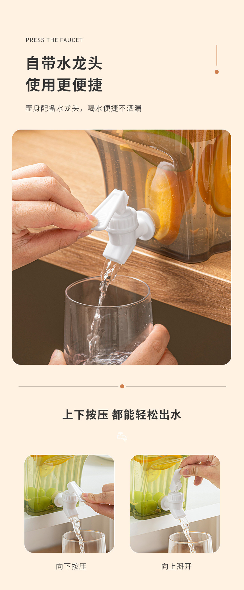 Botella de agua fría con grifo horizontal poner refrigerador botella de agua fría hogar de verano gran capacidad resistente a la caída tanque de agua fría engrosada