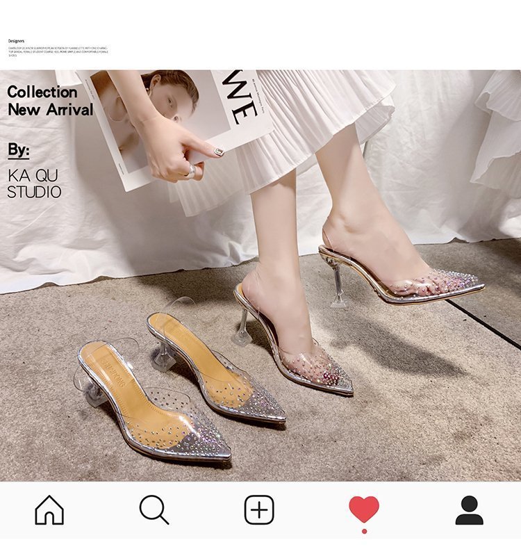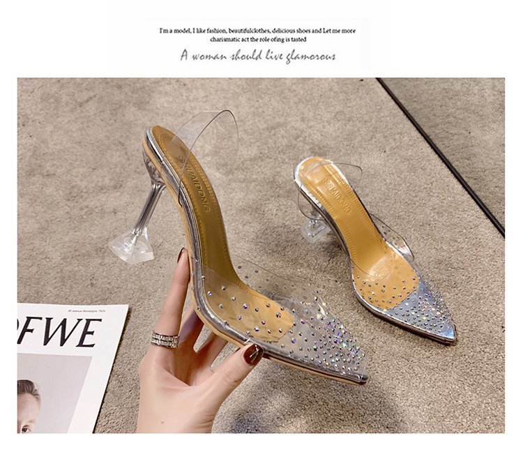Transfronterizo 2020 nuevos tacones altos verano estilo coreano europeo y americano cristal tacón stiletto sandalias mujeres