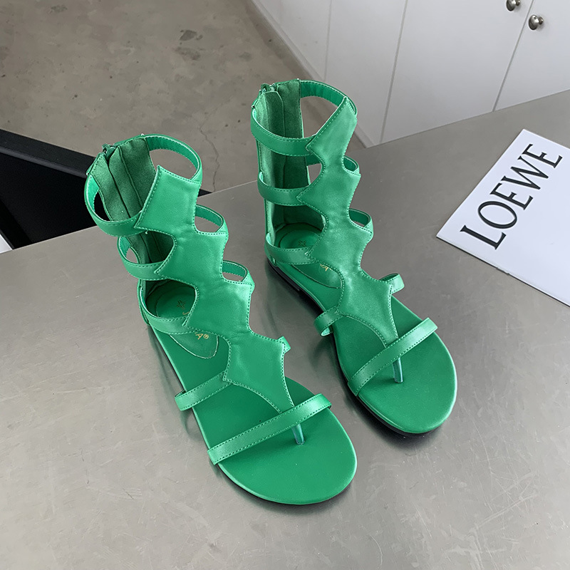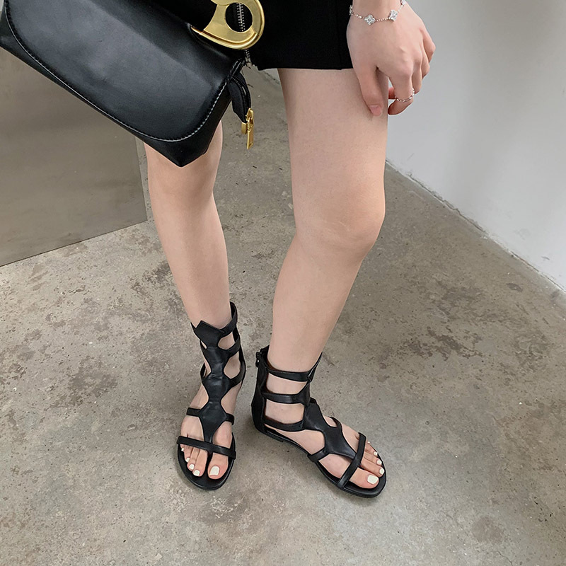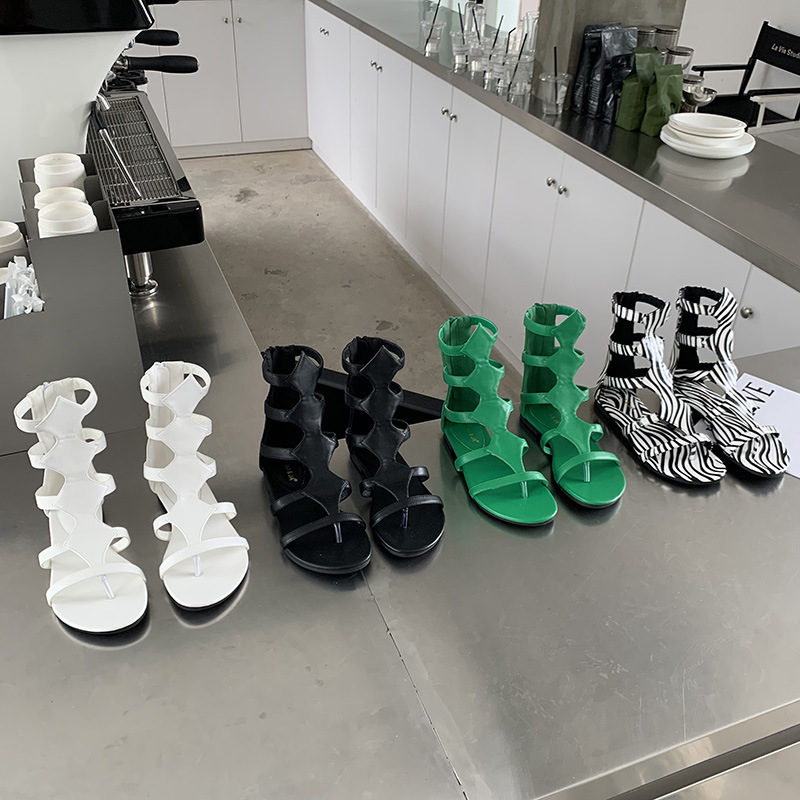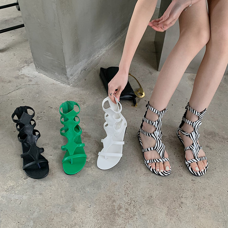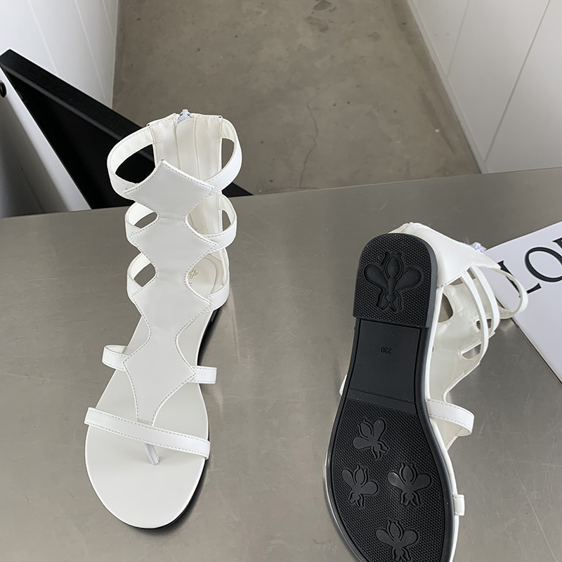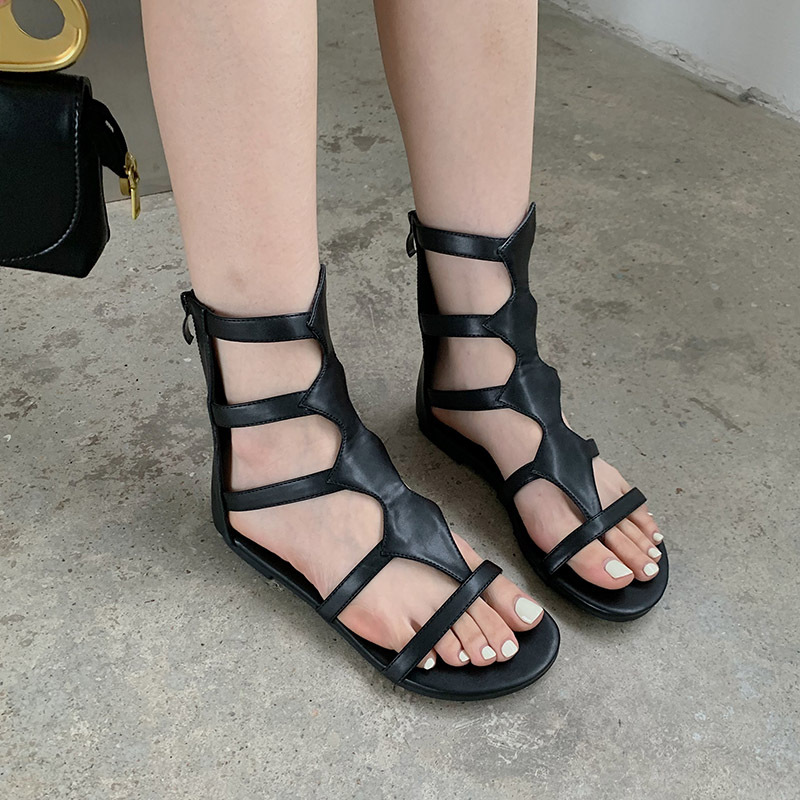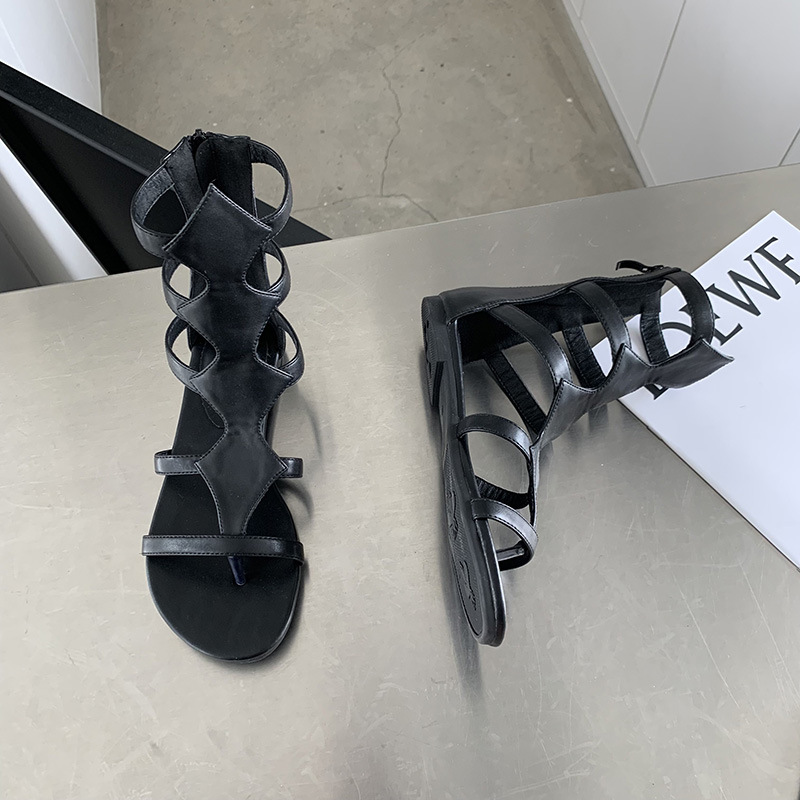 Zapatos romanos de las mujeres 2024 verano nuevo punta abierta hueco-hacia fuera moda casual estilo de hadas cómodo alto-top Sandalias planas