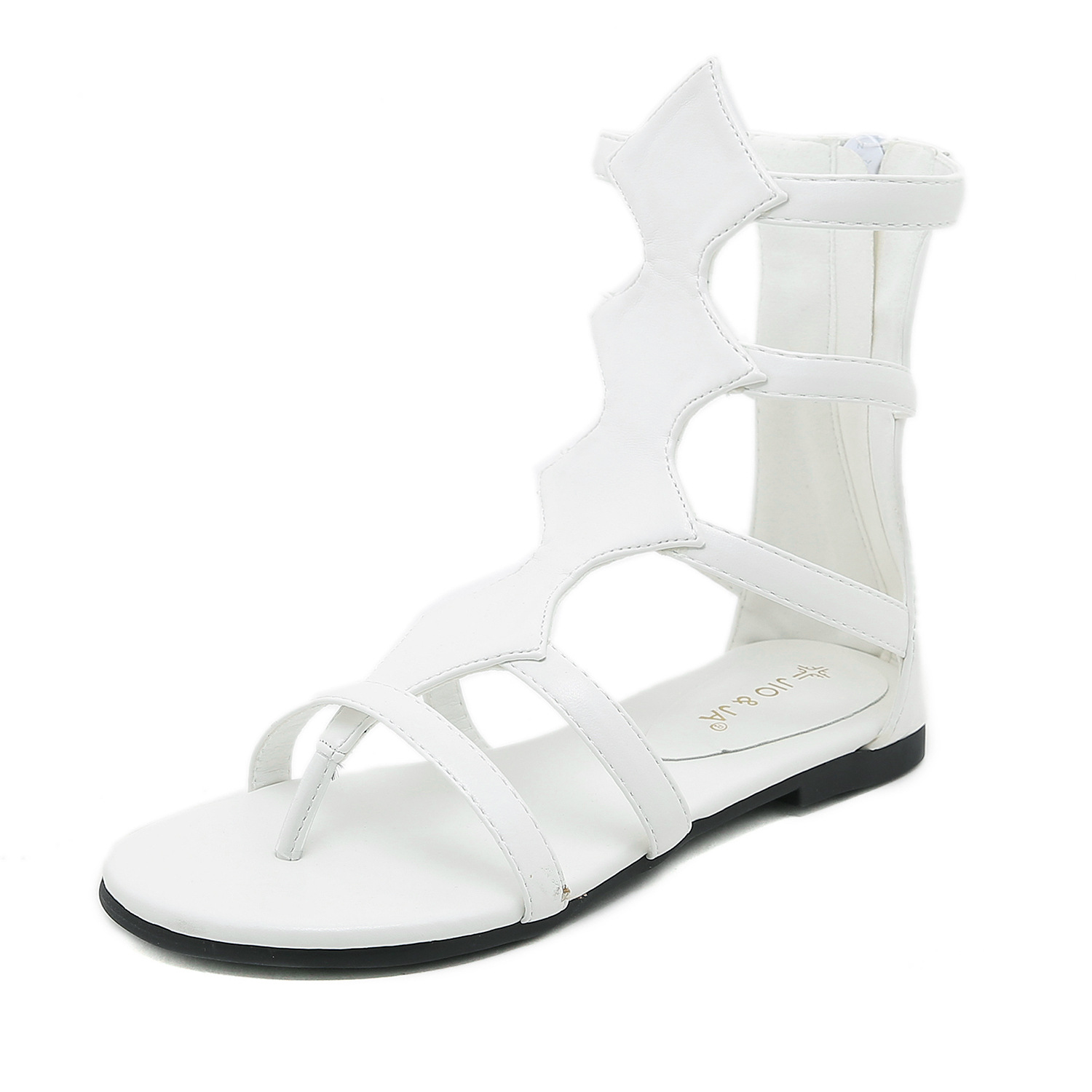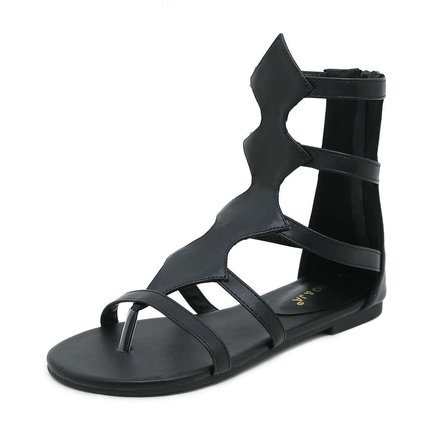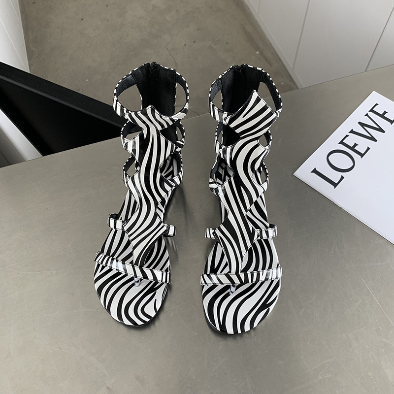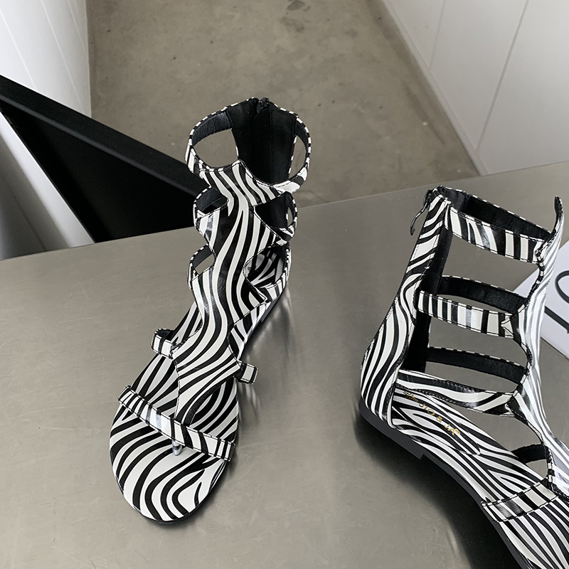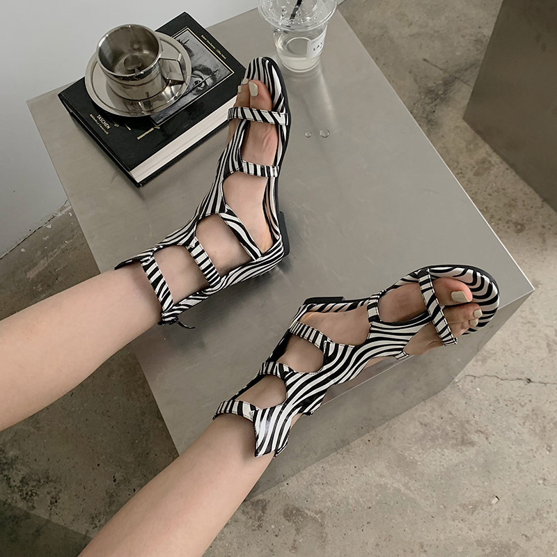 Zapatos romanos de las mujeres 2024 verano nuevo punta abierta hueco-hacia fuera moda casual estilo de hadas cómodo alto-top Sandalias planas