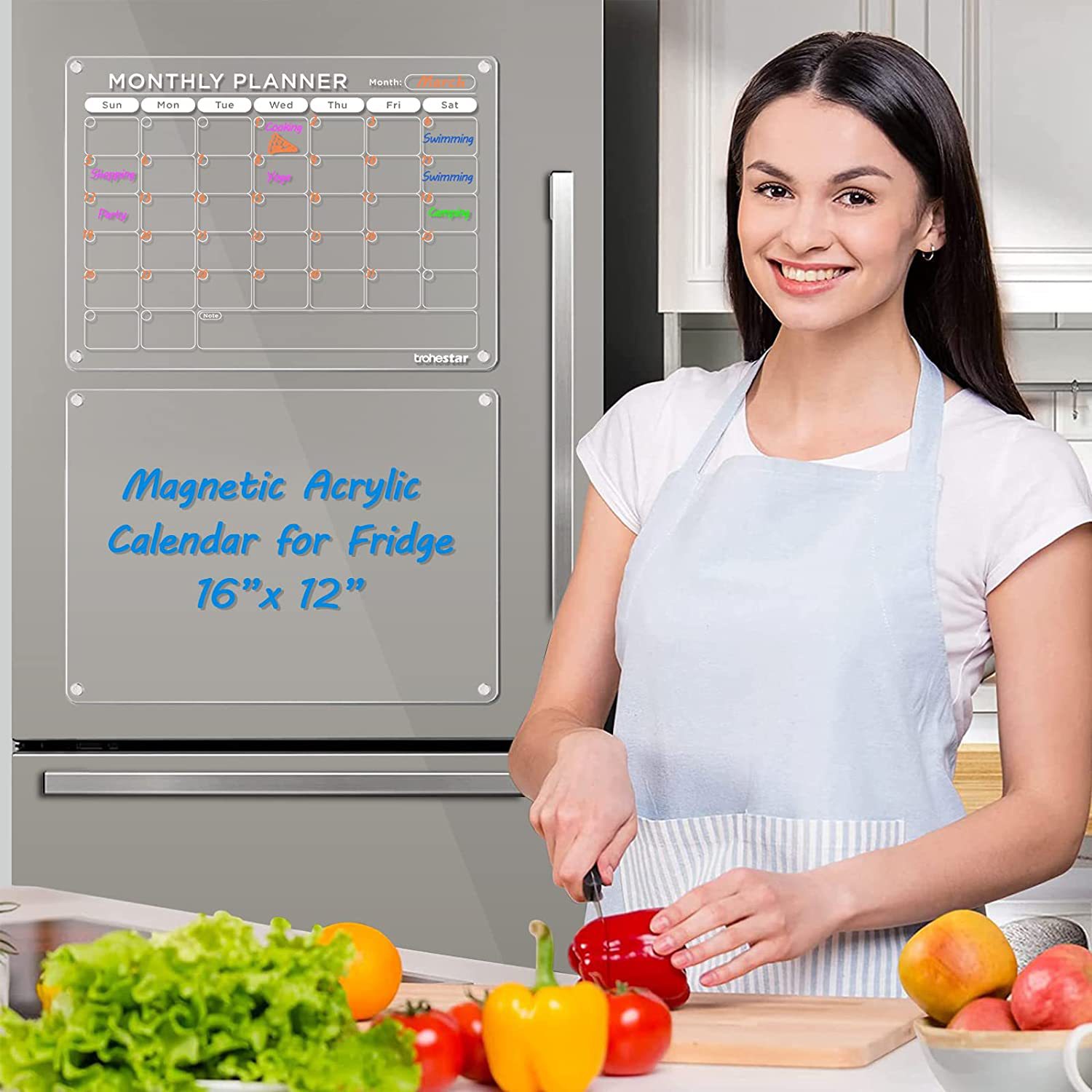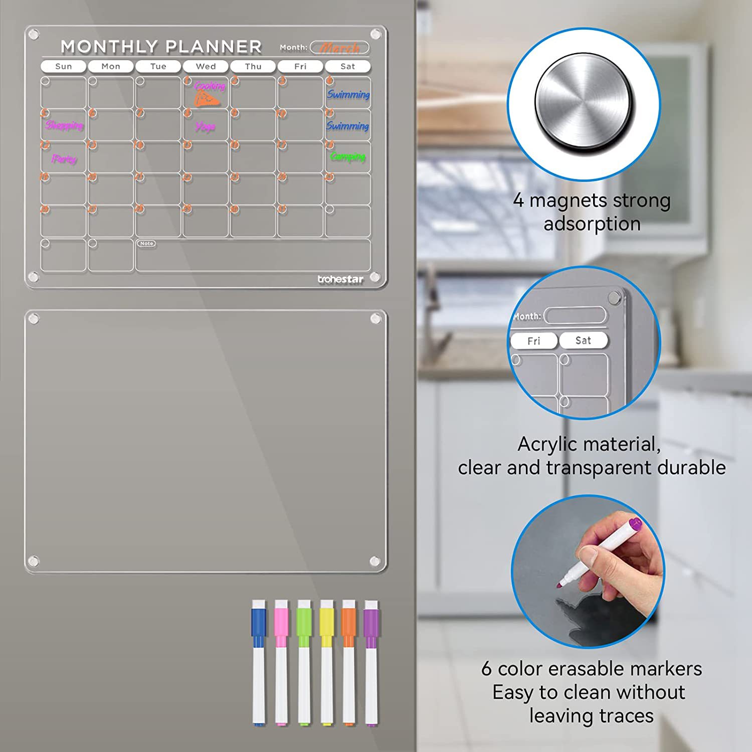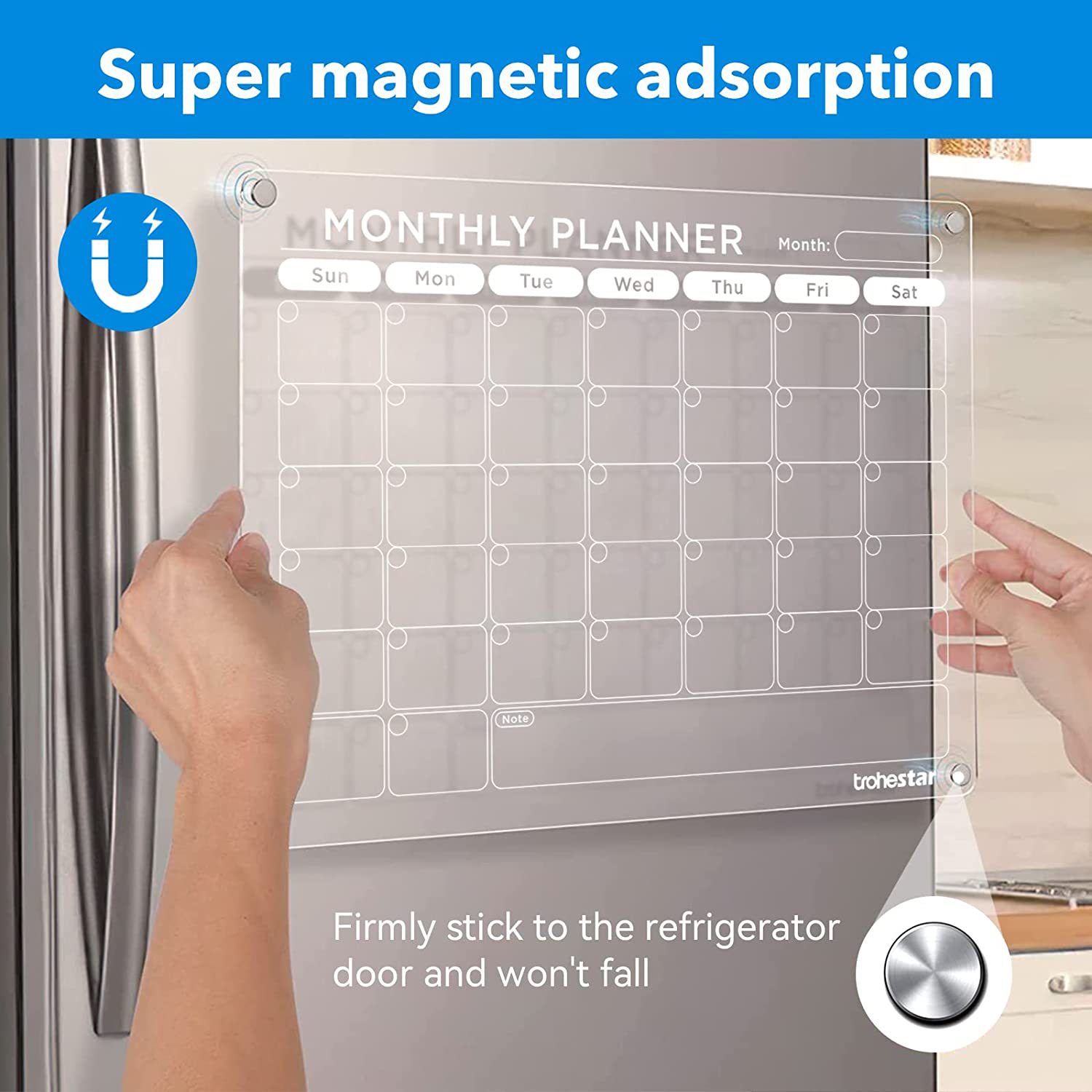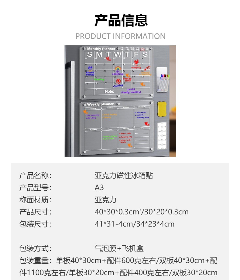 Aitee acrílico magnético seco borrar tablero calendario adecuado para refrigerador transparente seco borrar calendario adecuado para refrigerador
