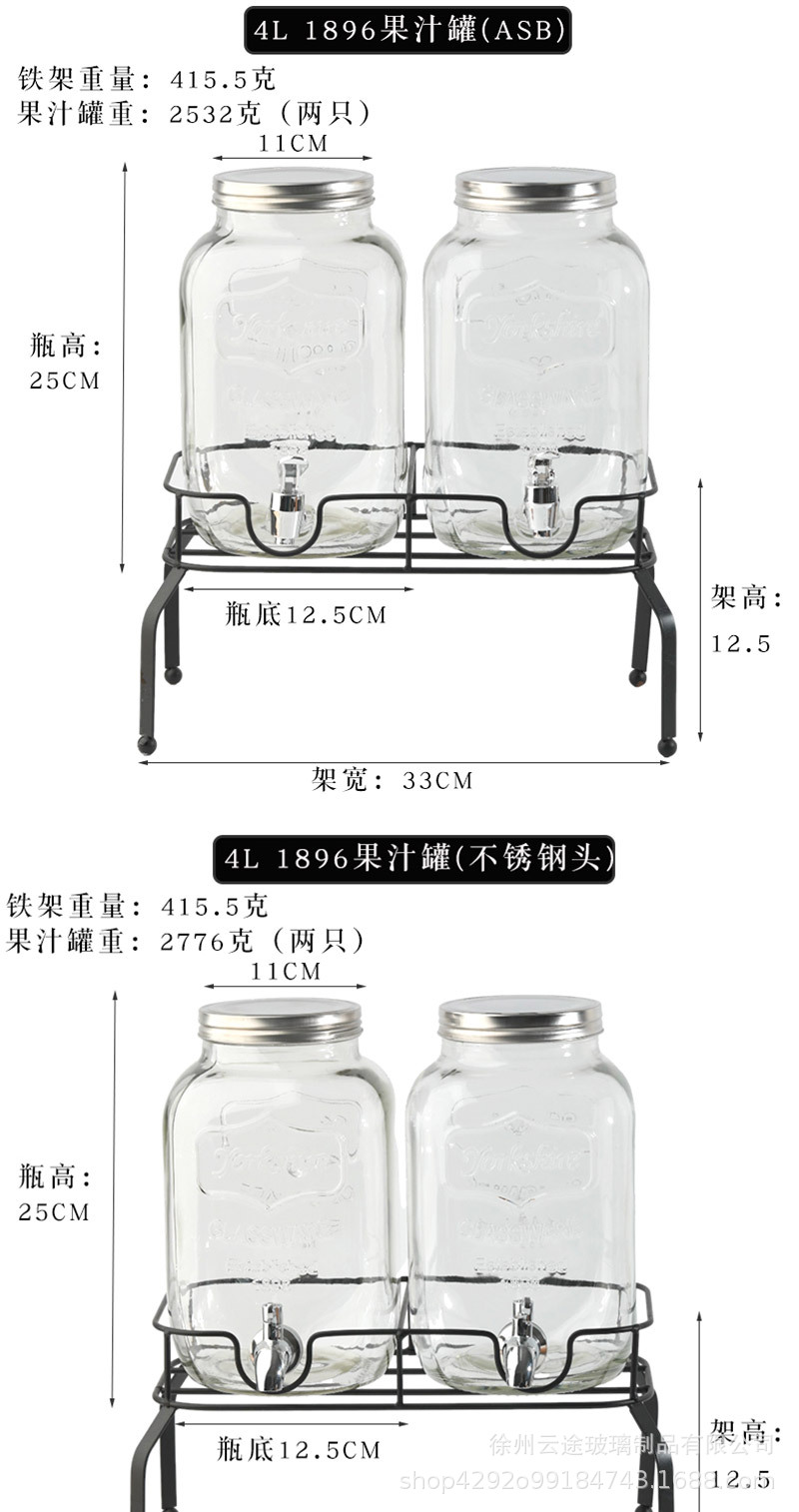 Amazon vidrio transparente tarro de jugo con grifo comercial restaurante bebida leche cola cubo cóctel traje al por mayor