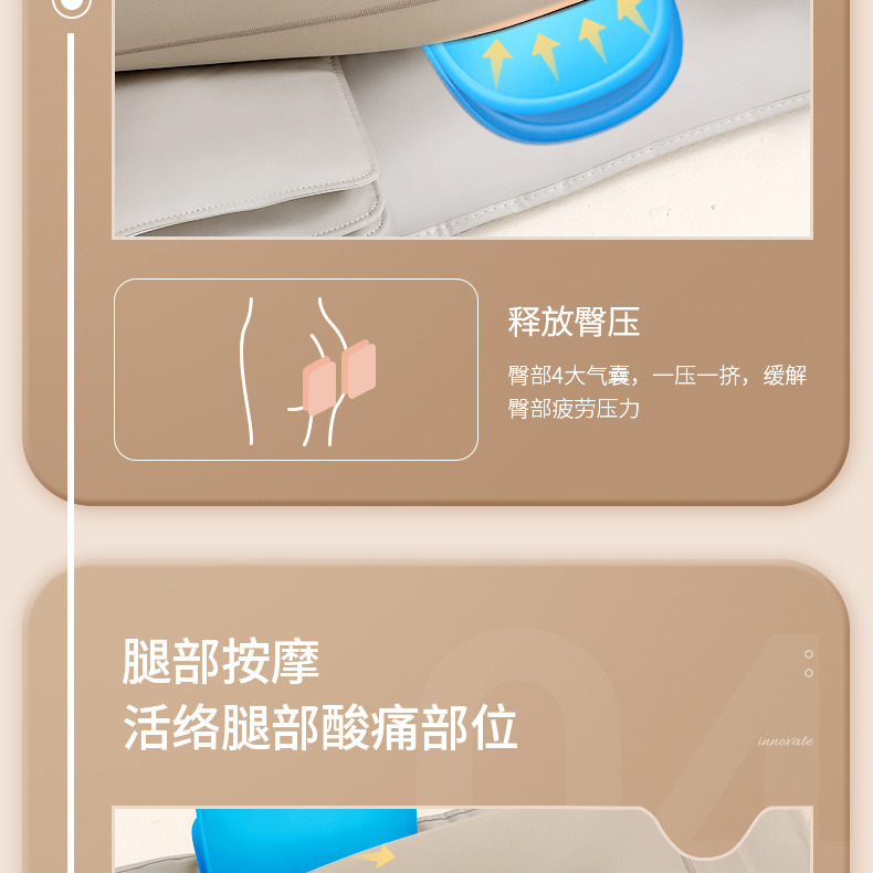 | Técnica de masaje | Vibración,Compresa caliente,Presión de aire,Airbag,Amasamiento |