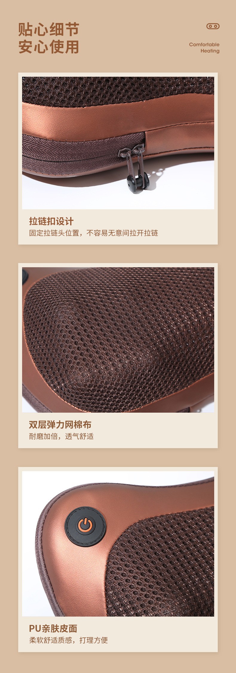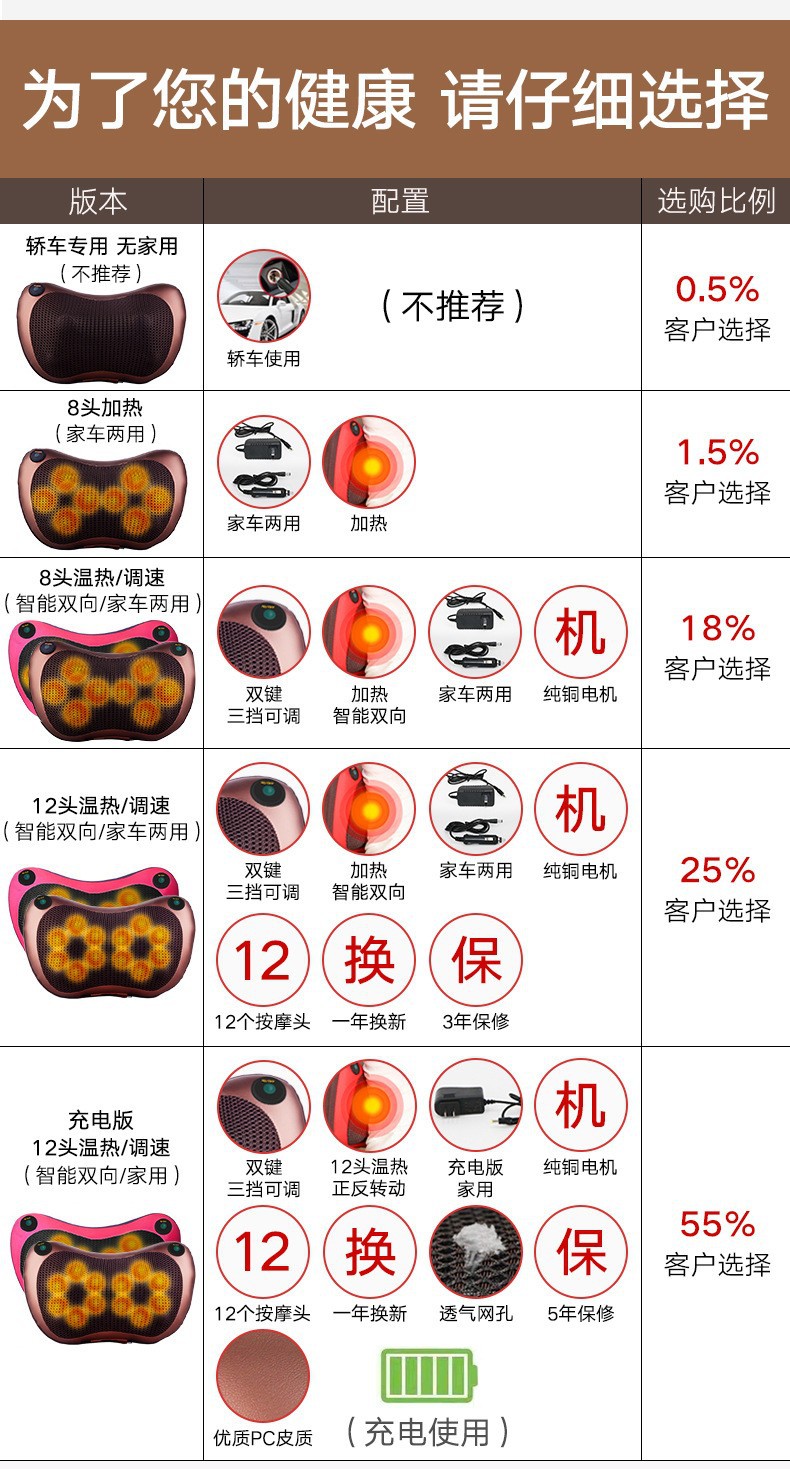 | Especificaciones | Dieciséis cabezas/un solo botón a marrón,Almohada de masaje de doble giro de dieciséis cabezas/doble llave marrón,Almohada de masaje de doble giro de dieciséis cabezas/doble botón rojo,Almohada de masaje de dieciséis cabezales y cuatro botones |