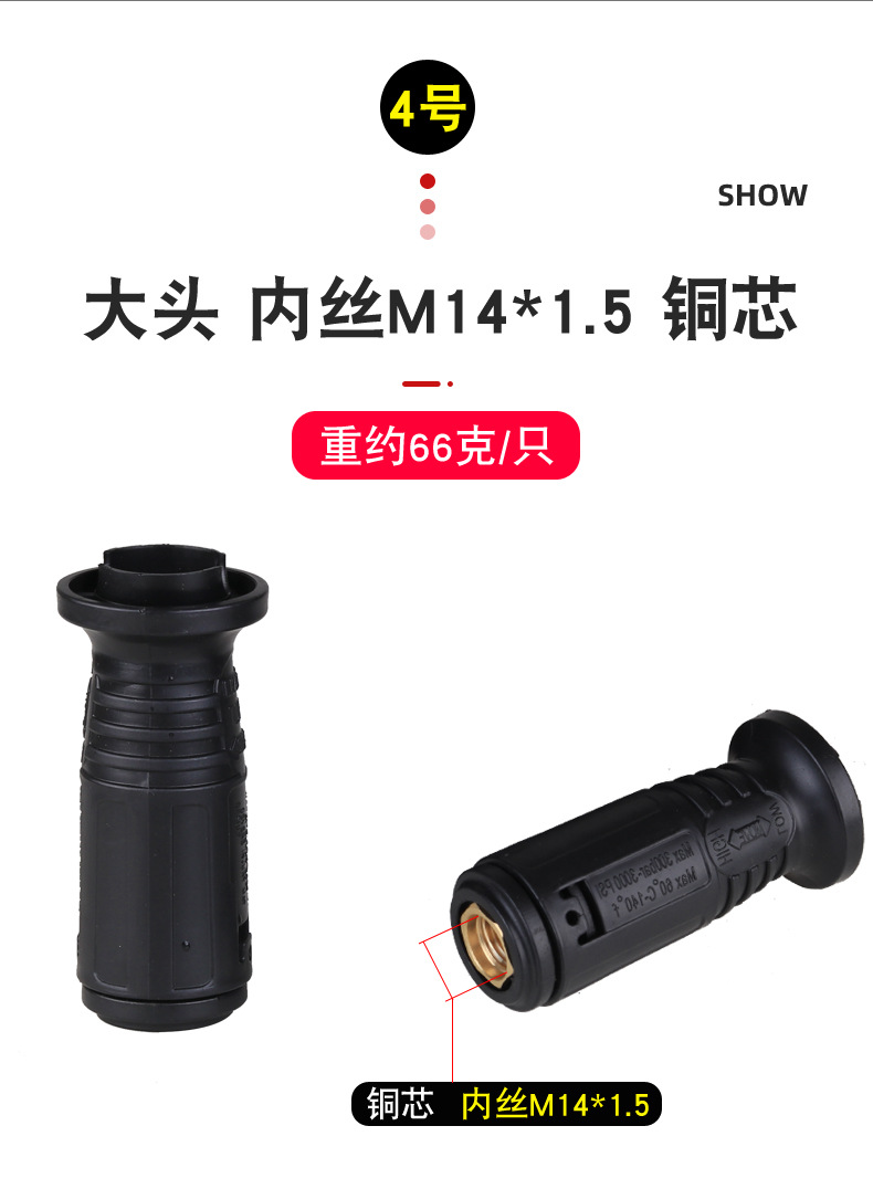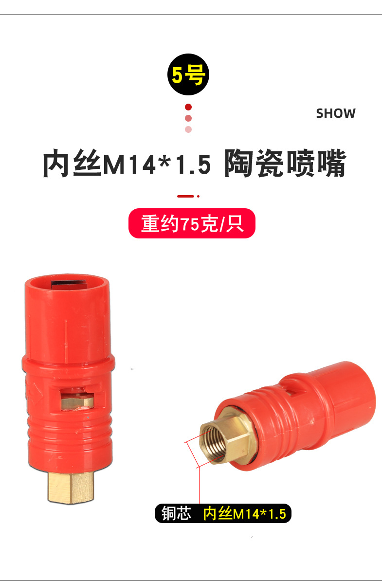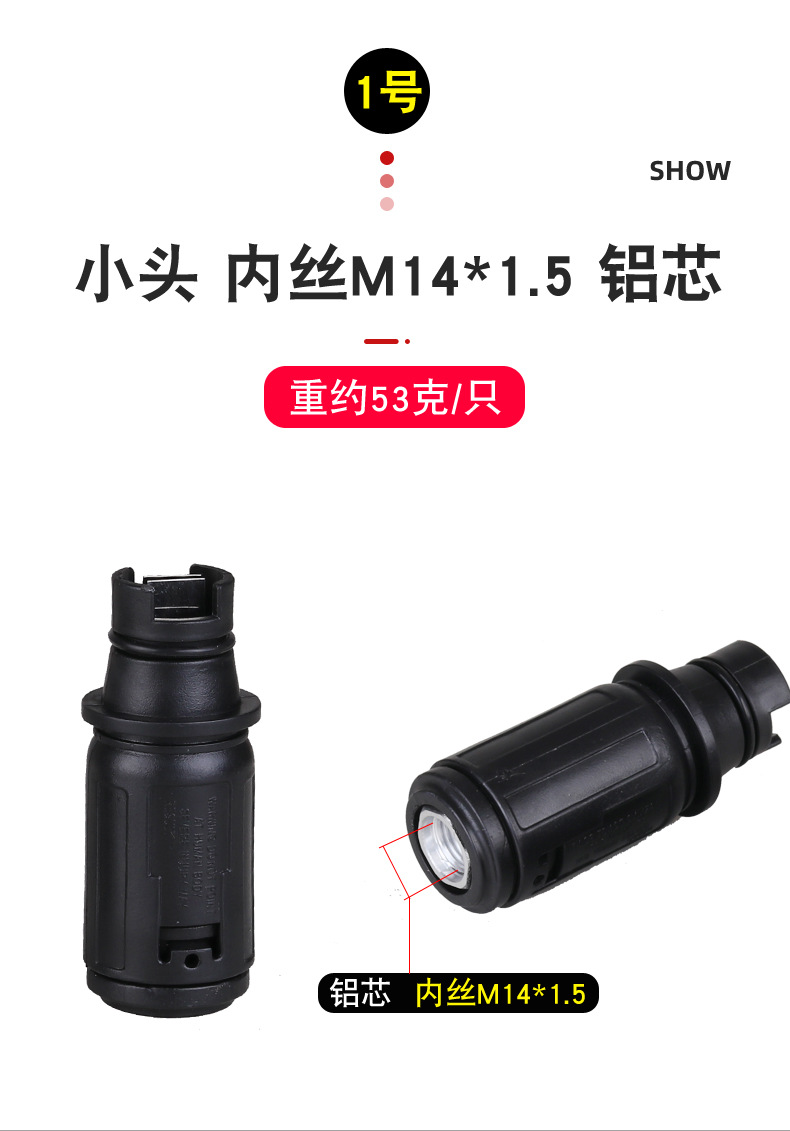 | Especificaciones | No. 1 núcleo de aluminio de cabeza pequeña 14,Núcleo de aluminio de cabeza pequeña N ° 1 1/4 enchufe rápido,Núcleo de cobre de cabeza pequeña N ° 2 14,N ° 2 cabeza pequeña núcleo de cobre 1/4 enchufe rápido,N ° 3 pequeña cabeza núcleo de plástico exterior 16,Núcleo de cobre de cabeza grande N ° 4 14,No. 4 núcleo de cobre cabeza grande 1/4 enchufe rápido,N ° 5 de cerámica roja boca 14,Boquilla de cerámica roja N ° 5 1/4 tapón rápido |