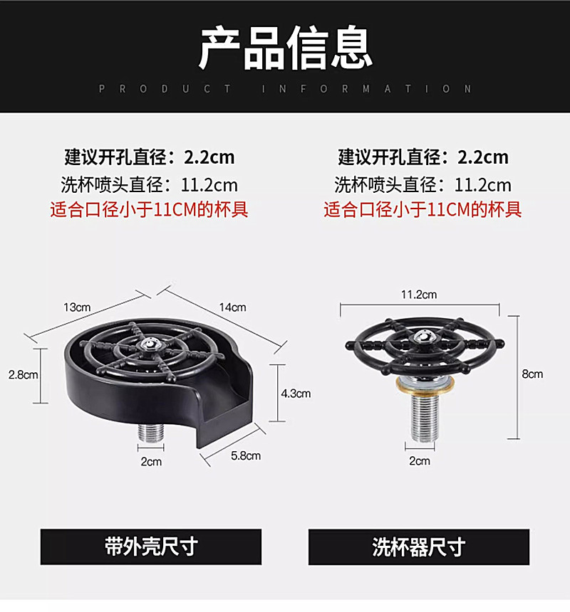 304 taza de alta presión de acero inoxidable lavadora boquilla café leche té taza de lavado bar fregadero automático taza de lavado