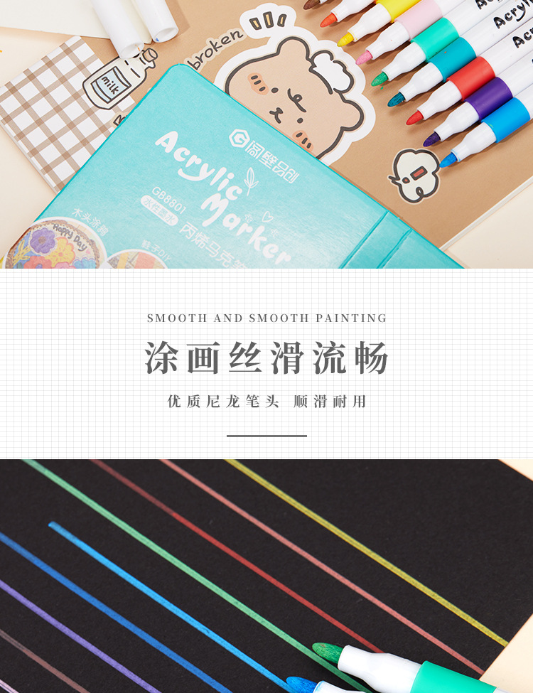 Marcador de acrílico, papel suave e impermeable, juego de bolígrafos de acuarela de pintura acrílica, estudiante de graffiti pintado a mano de bricolaje