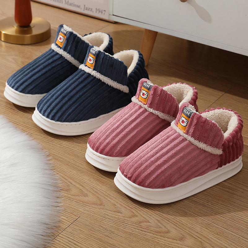 2023 nuevo par de Zapatillas de algodón alto de las mujeres bolsa de tacón de invierno ropa exterior forrado de lana caliente plataforma plana zapatos de algodón de los hombres