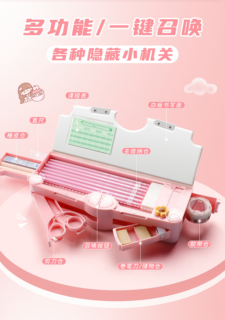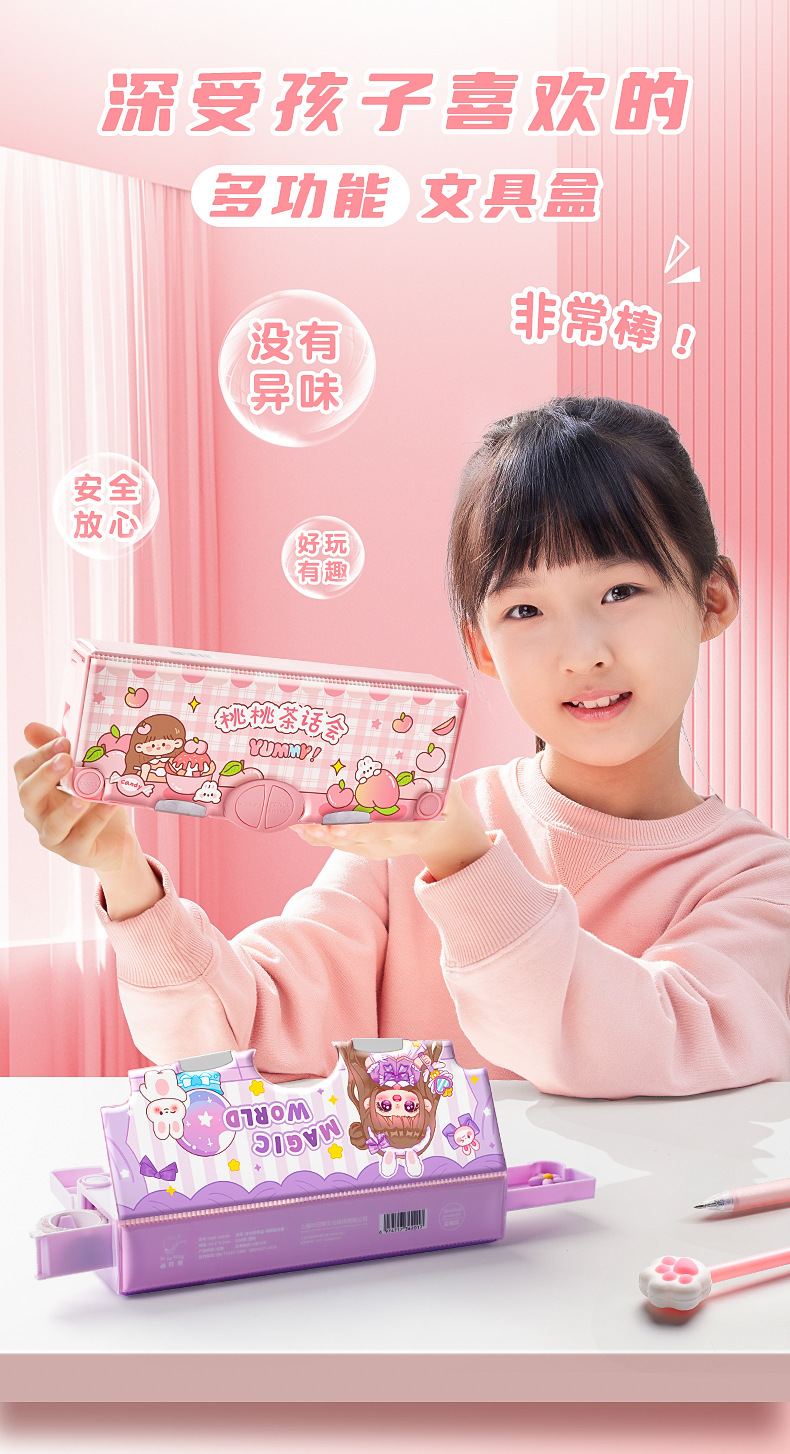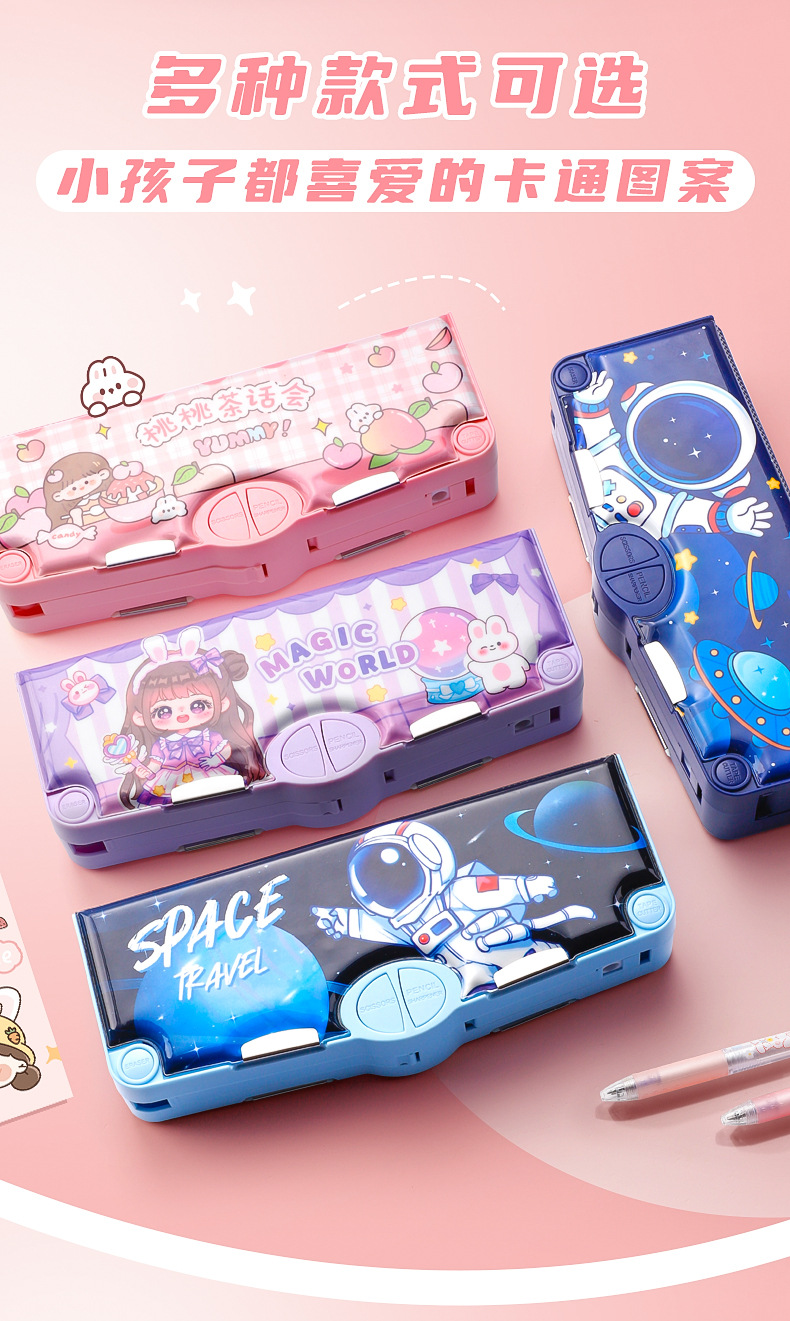 Caja de almacenamiento avanzada de plástico para niños Caja de papelería de dibujos animados creativa multifuncional caja de lápices de gran capacidad para estudiantes de primaria