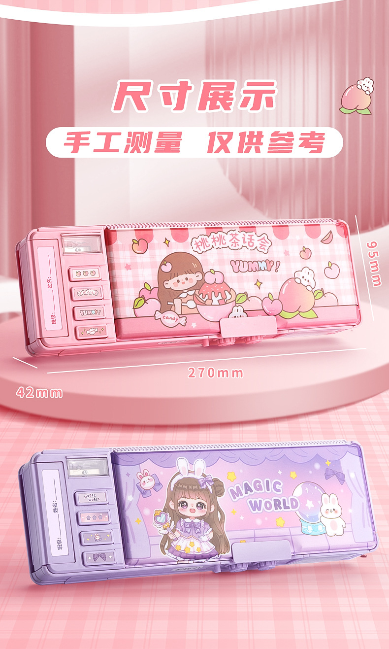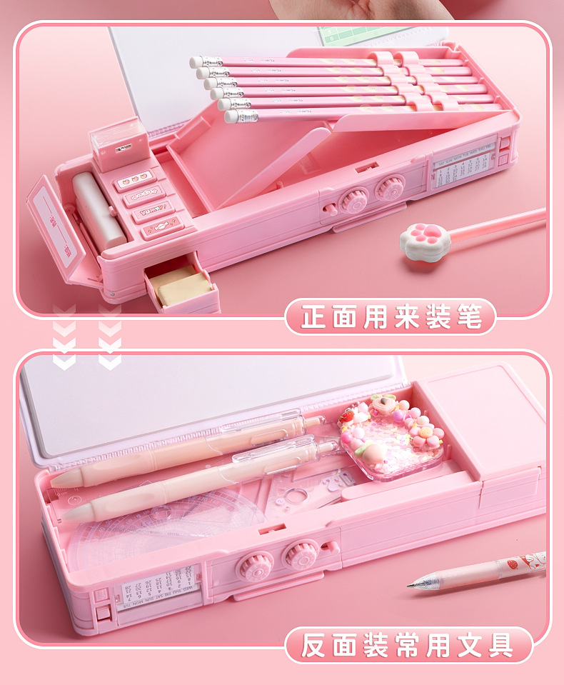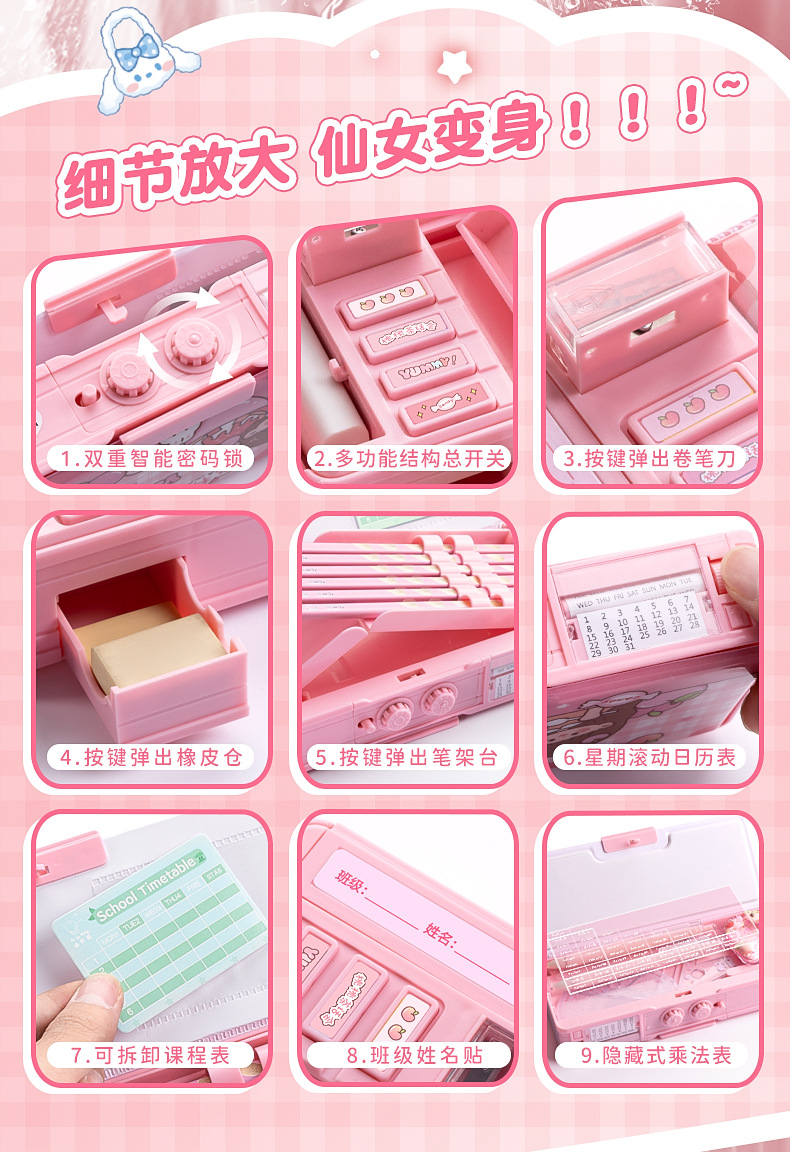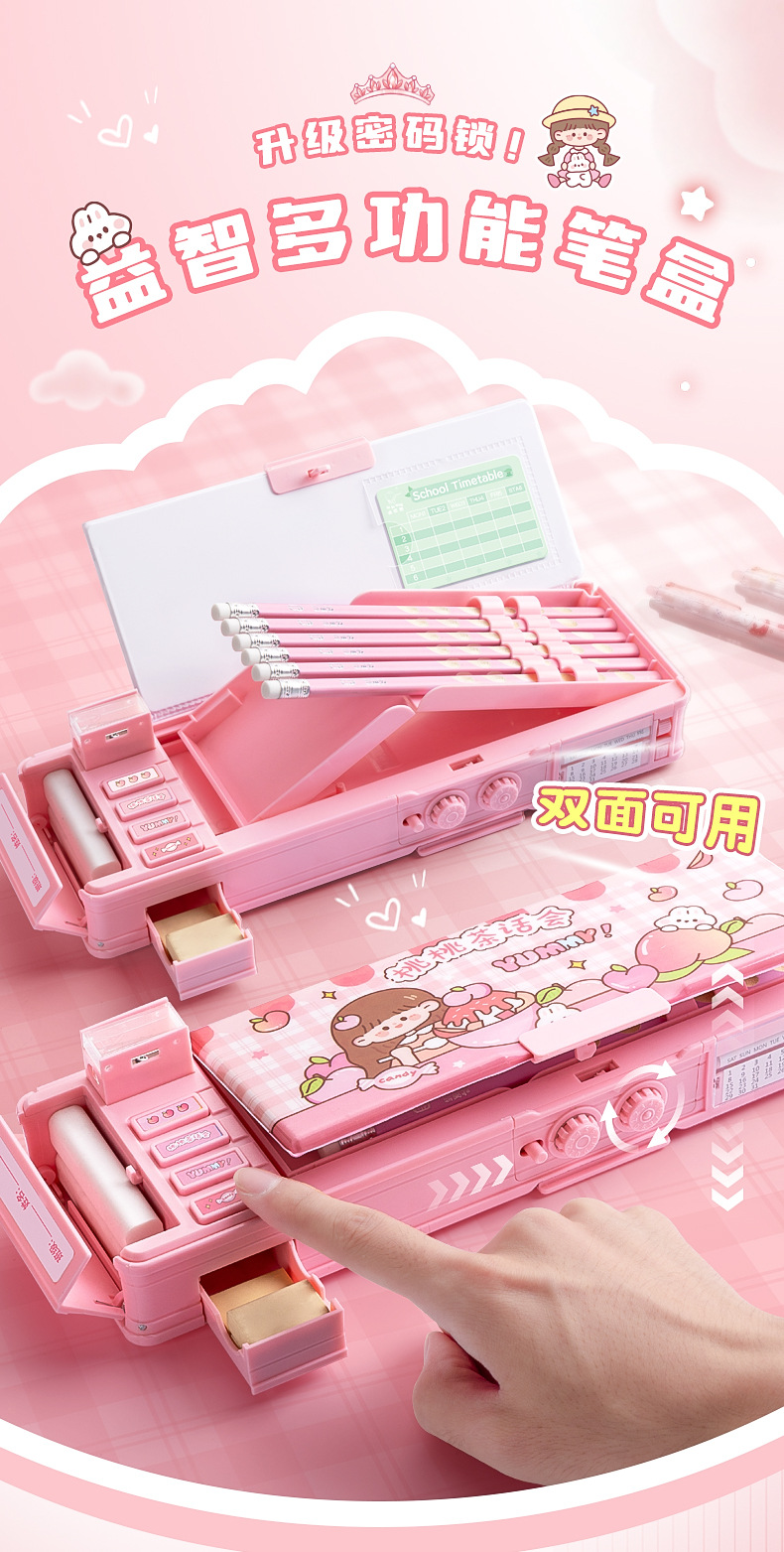Caja de papelería multifuncional caja de pluma de bloqueo de contraseña de niña niños de escuela primaria doble caja de lápiz de órgano de gran capacidad