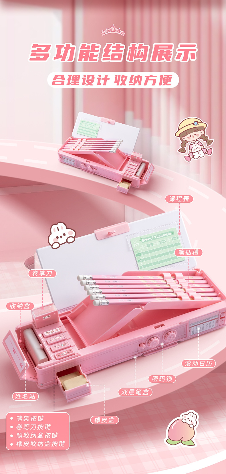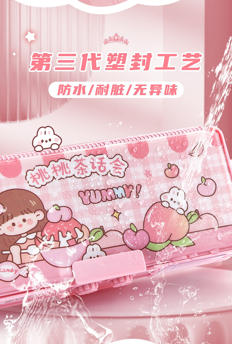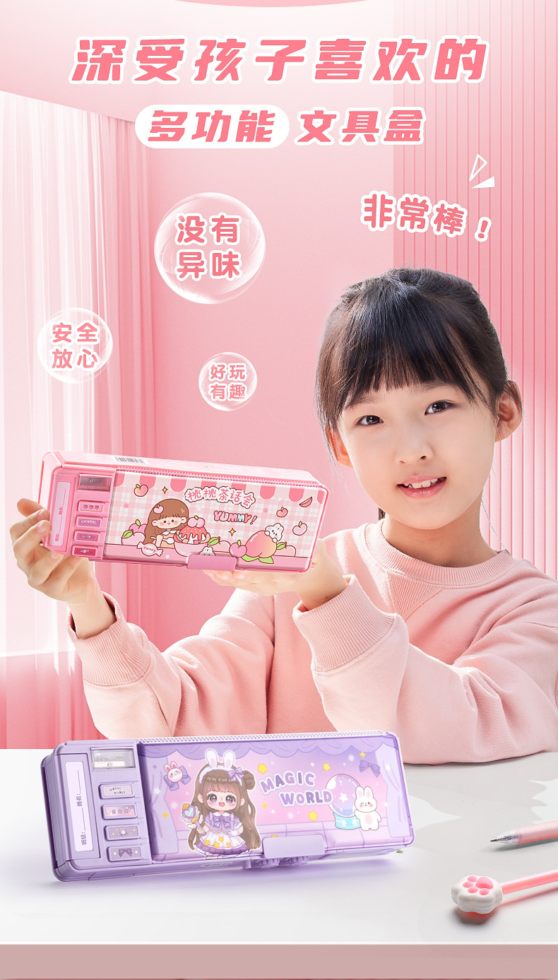 Caja de papelería multifuncional caja de pluma de bloqueo de contraseña de niña niños de escuela primaria doble caja de lápiz de órgano de gran capacidad