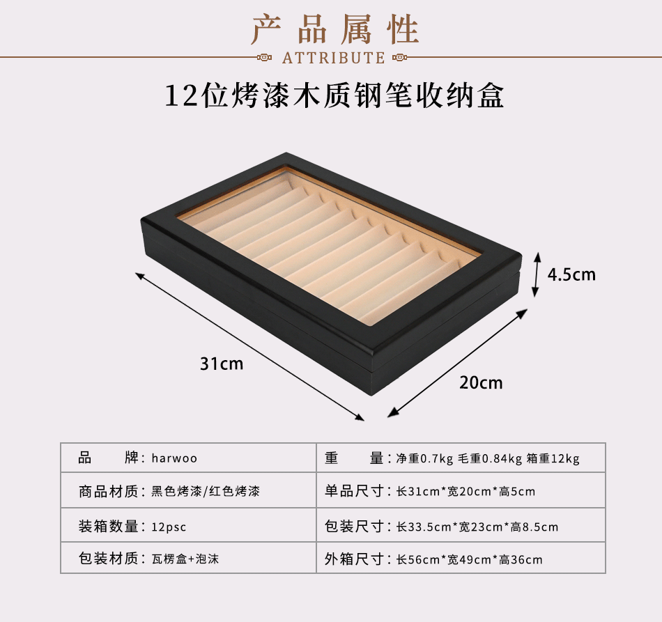En stock al por mayor pintura de madera de 12 bits de almacenamiento de la pluma caja de embalaje caja de la pluma de madera simple