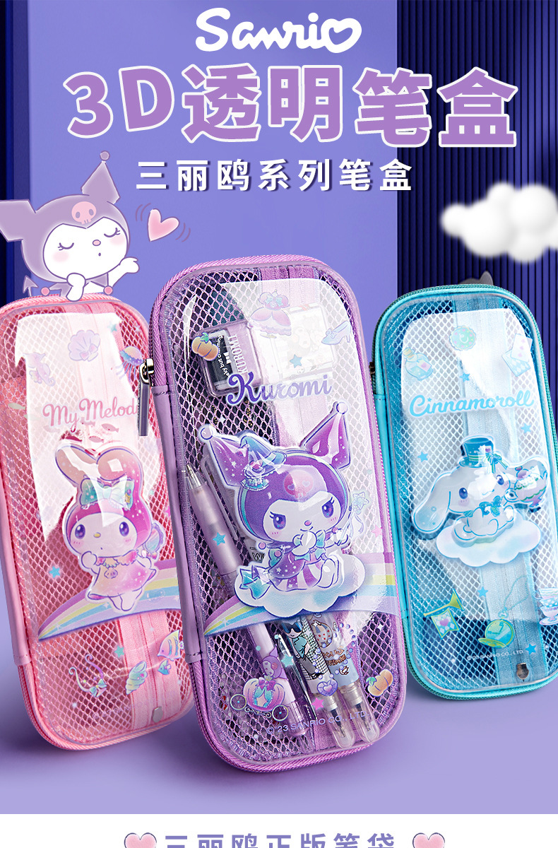 Caja de lápiz de perro Sanrio yugui caja de lápiz de aspecto alto para niña coolomi Cartoon lindo transparente caja de lápiz de gran capacidad