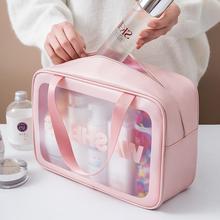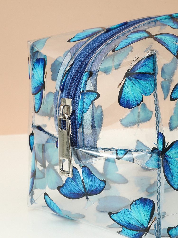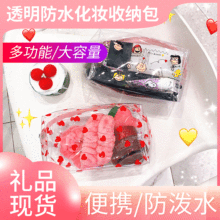 Suministro nuevo PVC transparente bolsa de cosméticos bolsa de almacenamiento impermeable de las mujeres dibujos animados transparente brillo lentejuelas bolsa de cosméticos