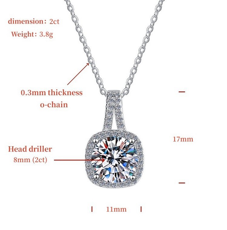 Colgante de moissanita transfronterizo para mujer, cadena de clavícula, joyería cuadrada geométrica chapada en oro blanco, collar de plata de ley s925 a la moda