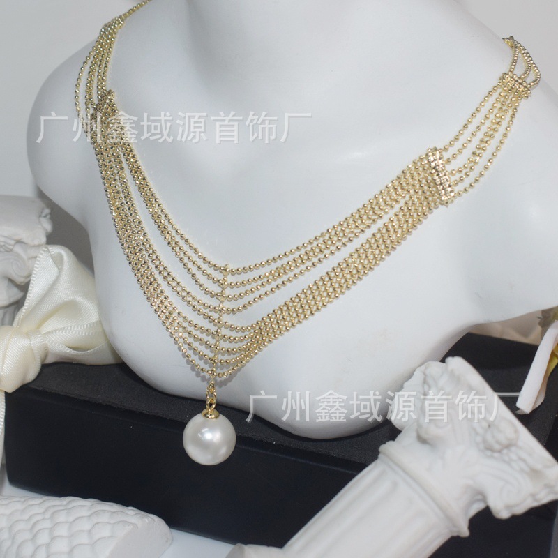 Collar de encaje, collar de perlas, collar de encaje clásico, cuentas de concha, colgante de nácar, suministro de transmisión en vivo femenino al por mayor